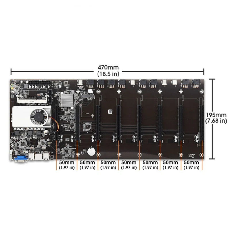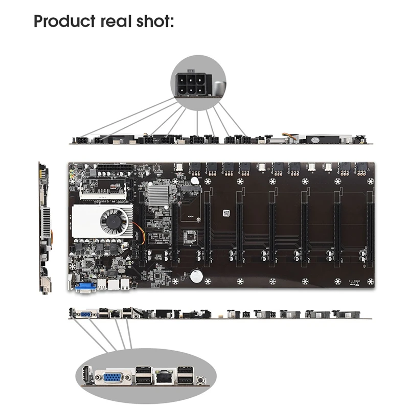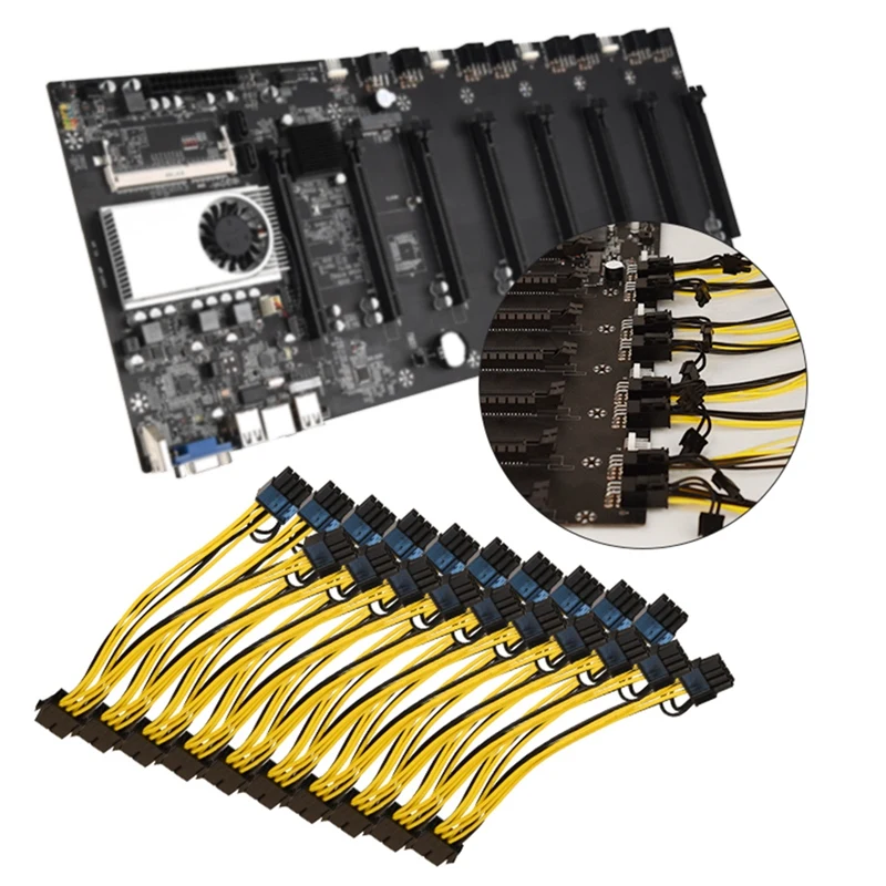 Майнинговая материнская плата 8 GPU Bitcoin Crypto Etherum Mining набор комбо с 1600MHz RAM, силовой кабель