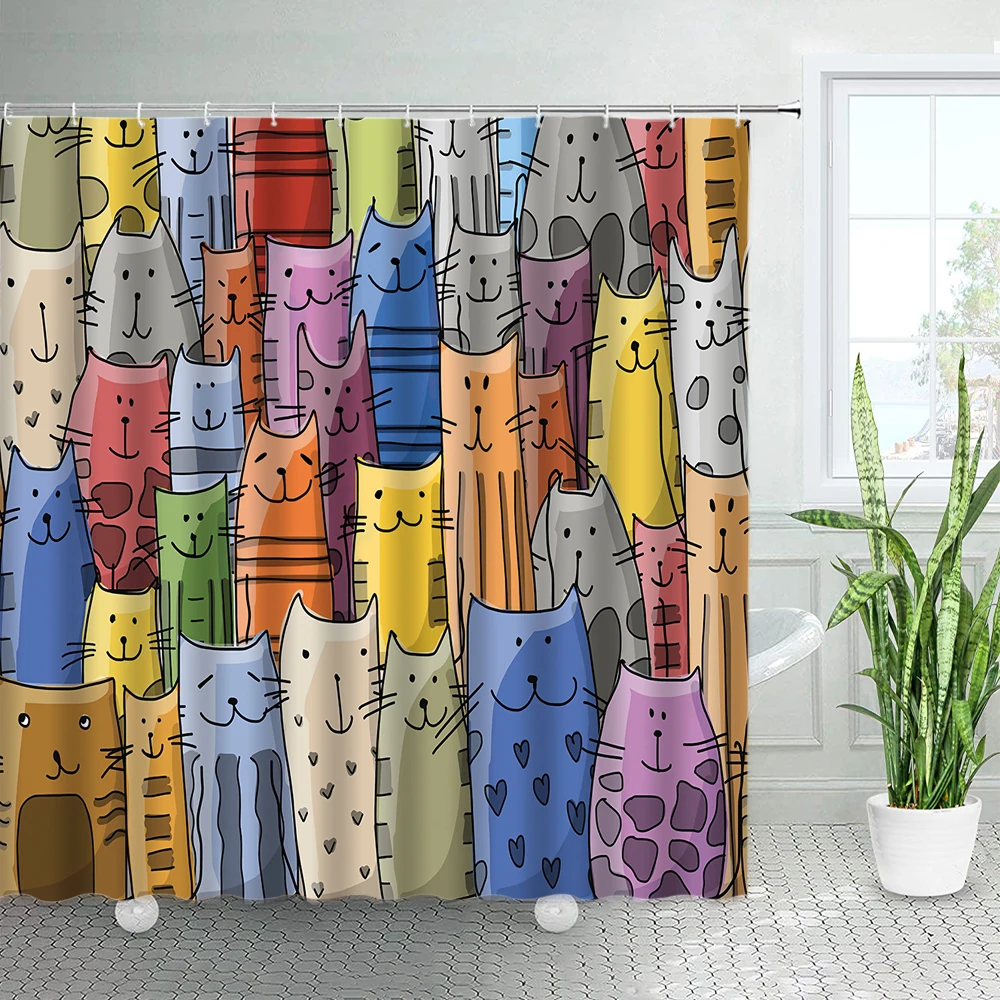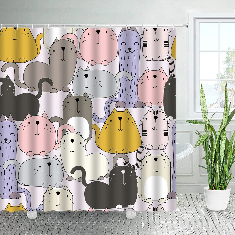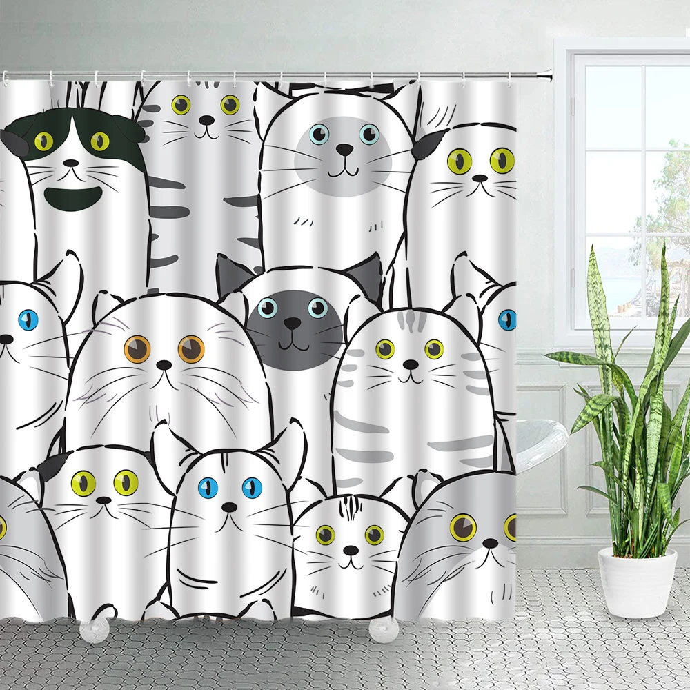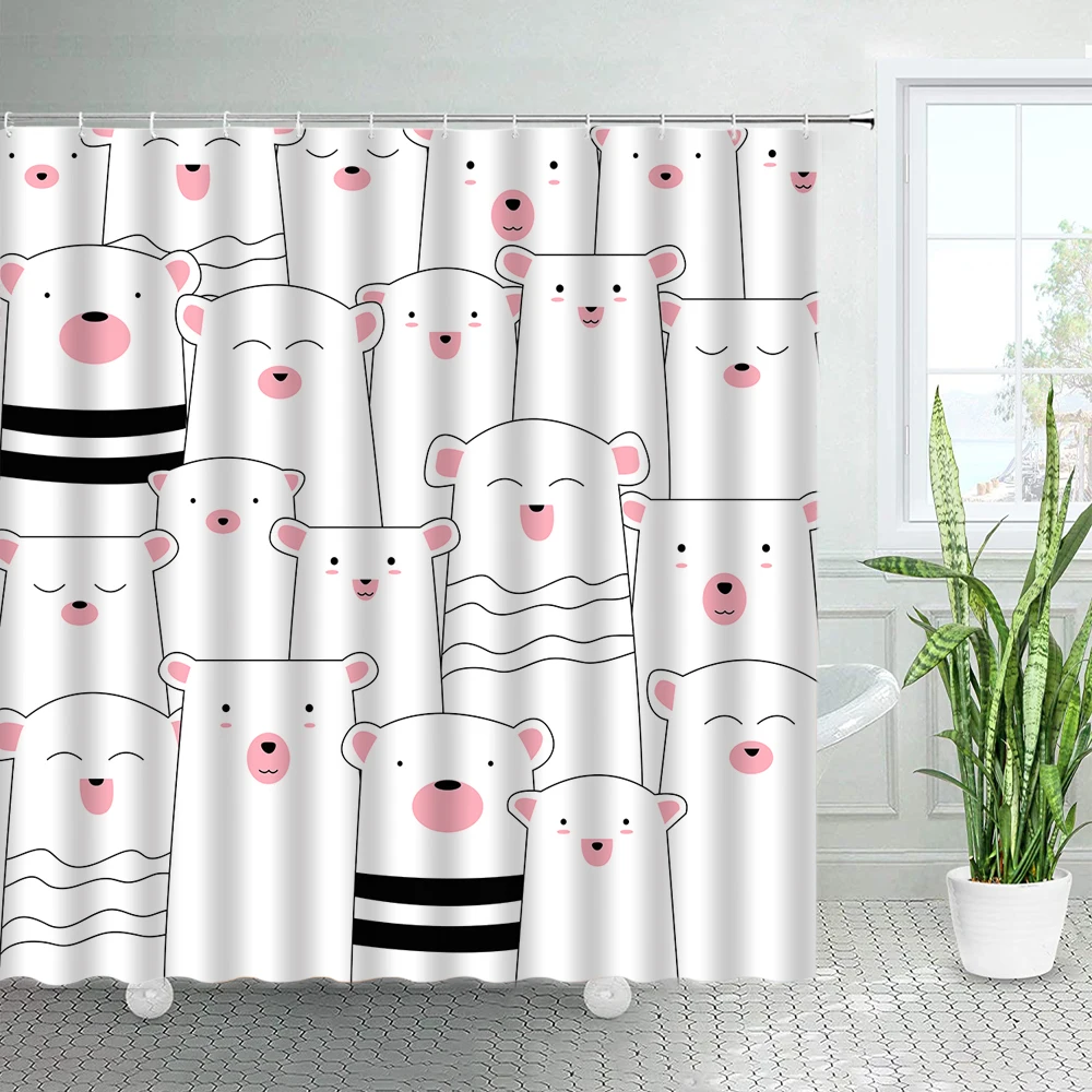 Занавески для душа из полиэстера, с забавным котом и белым медведем