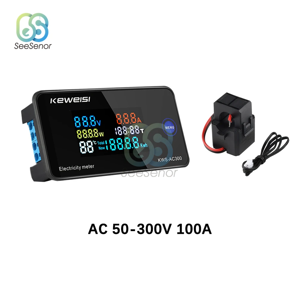Вольтметр-Амперметр AC 50-300 в 100A 10A, светодиодный цифровой тестер емкости и напряжения
