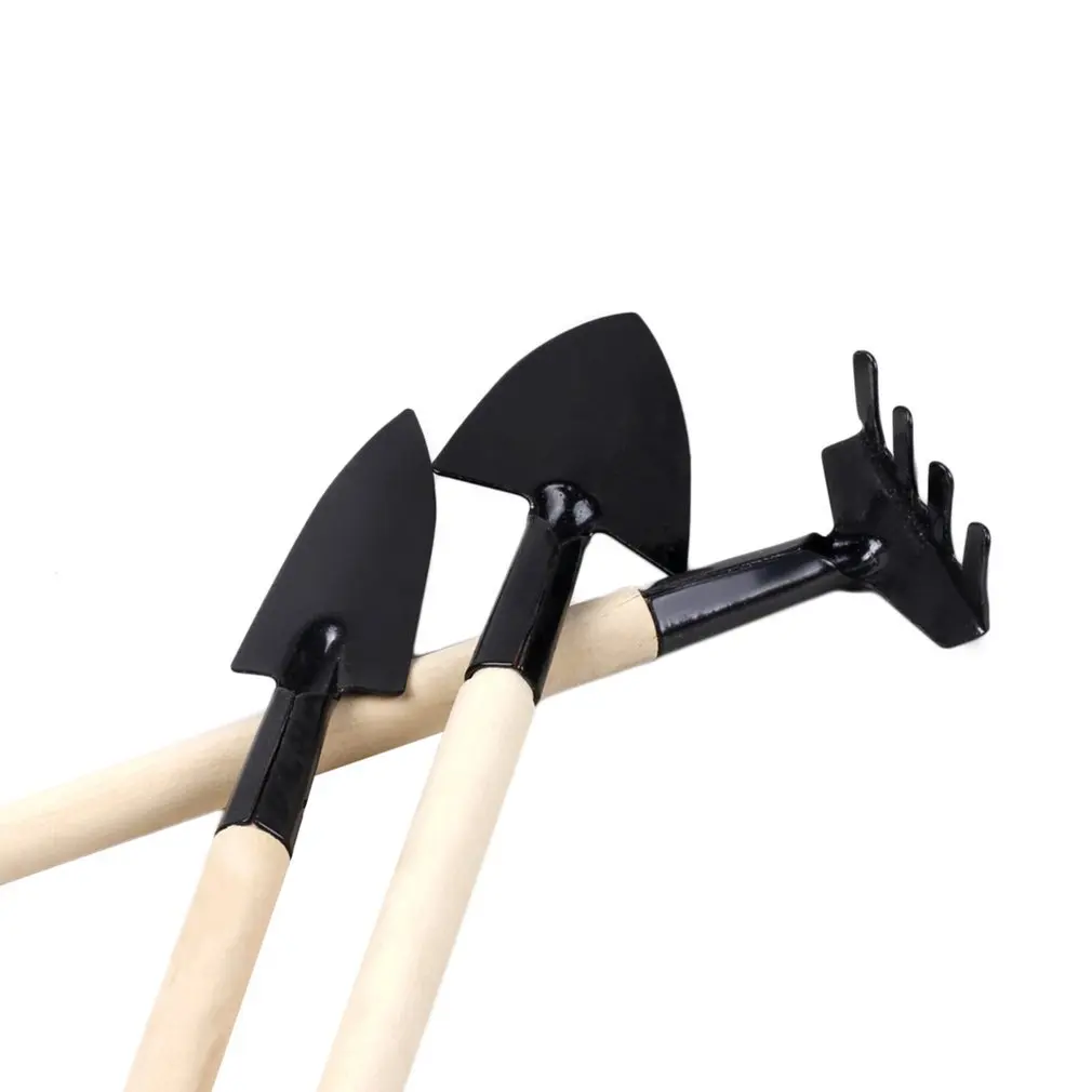 3 шт.компл. садовые инструменты с длинной ручкой, садовый мини-инструмент, деревянная ручка, металлическая головка, маленькая лопатка, грабли, лопатка