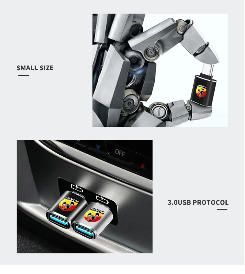 Автомобильный Стайлинг, переходник с Type C на USB, автомобильный зарядный адаптер для Fiat Abarth 595 Abarth 500 Abarth 124 Spider, автомобильные аксессуары