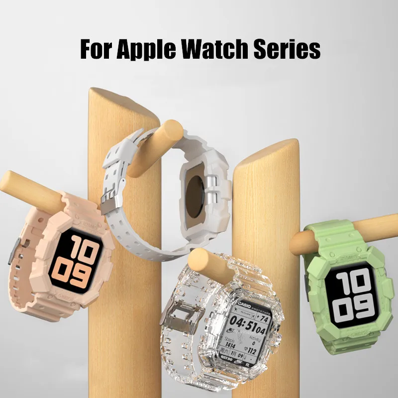 Чехол и ремешок для Apple Watch 7 6 5 4 3, сменный силиконовый браслет для iwatch SE 7 44 мм, 41 мм 45 мм