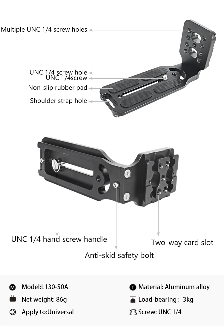L130-50 Универсальный кронштейн для вертикальной съемки L-образной быстроразъемной пластины, подставка для камеры Dslr Arca Swiss, штатив с шаровой головкой