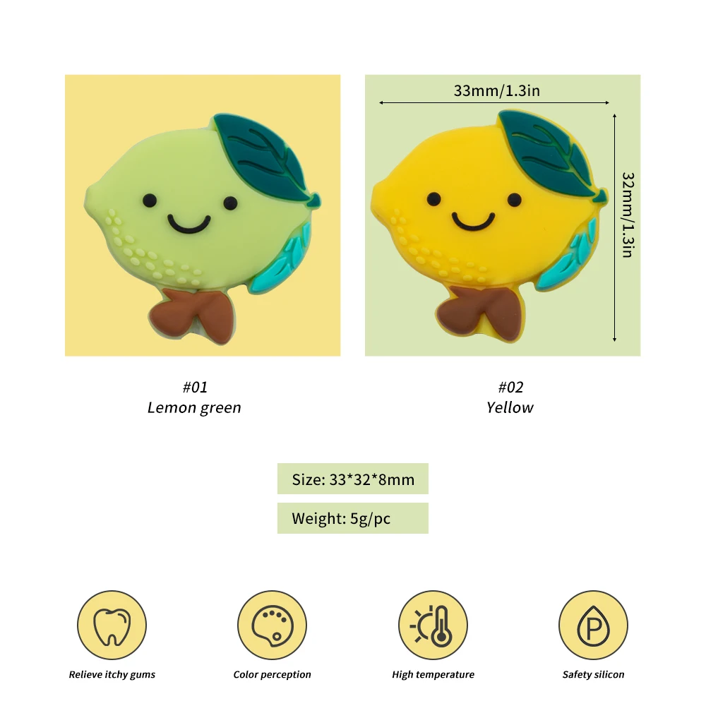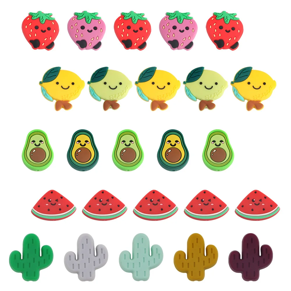 Товар: Фруктовый Набор силиконовых бусин;Вес: около 3,07 г ~ 5,32 г/шт;Форма: Арбуз/клубника/лимон/авокадо/КактусУпаковка: 10 силиконовых бусин (Упаковано в полипропиленовый пакет)Характеристики материала: без BPA, без нитрозамина, без ПВХ, без латекса, доступен фталат