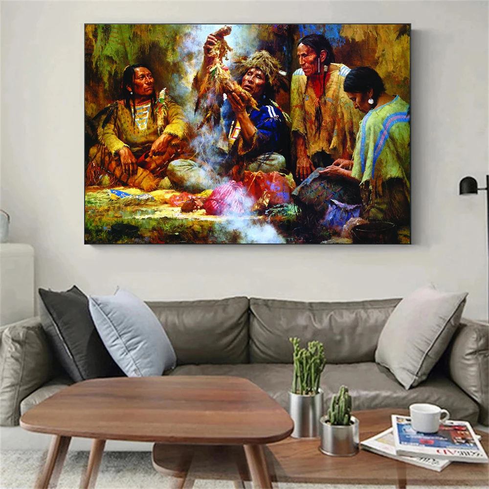 Картина на холсте родных индийских людей, плакаты, принты, портрет, Куадрос, красочная Настенная картина для гостиной, декор Куадрос