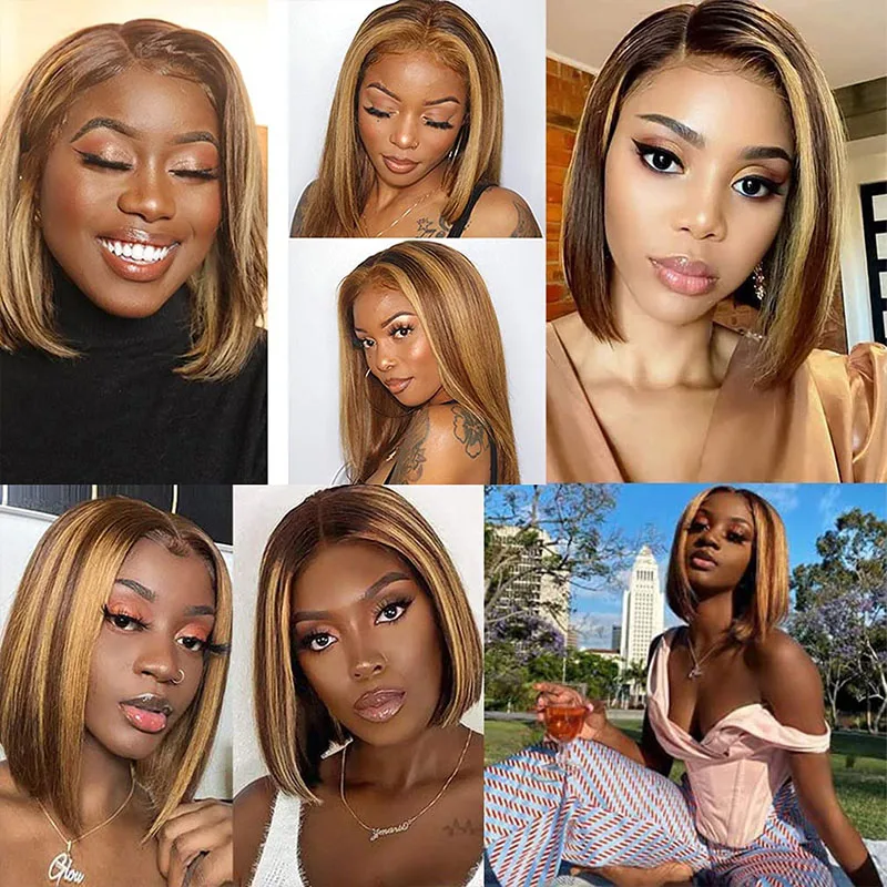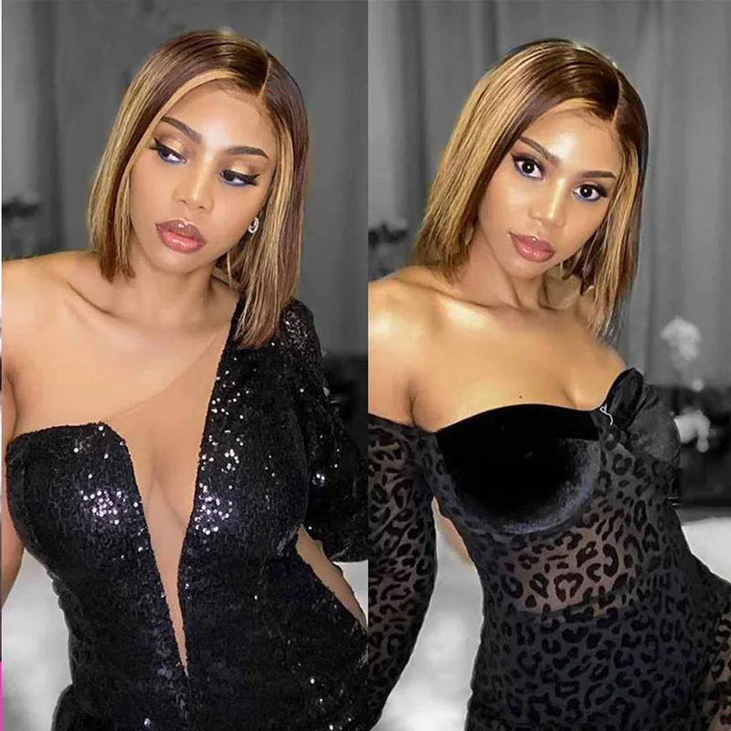 Персифон Омбре хайлайтер короткий боб парик 12 дюймов 13x 4 кружевной передний парик из человеческих волос коричневый хайлайтер боб парик прямой человеческий парик