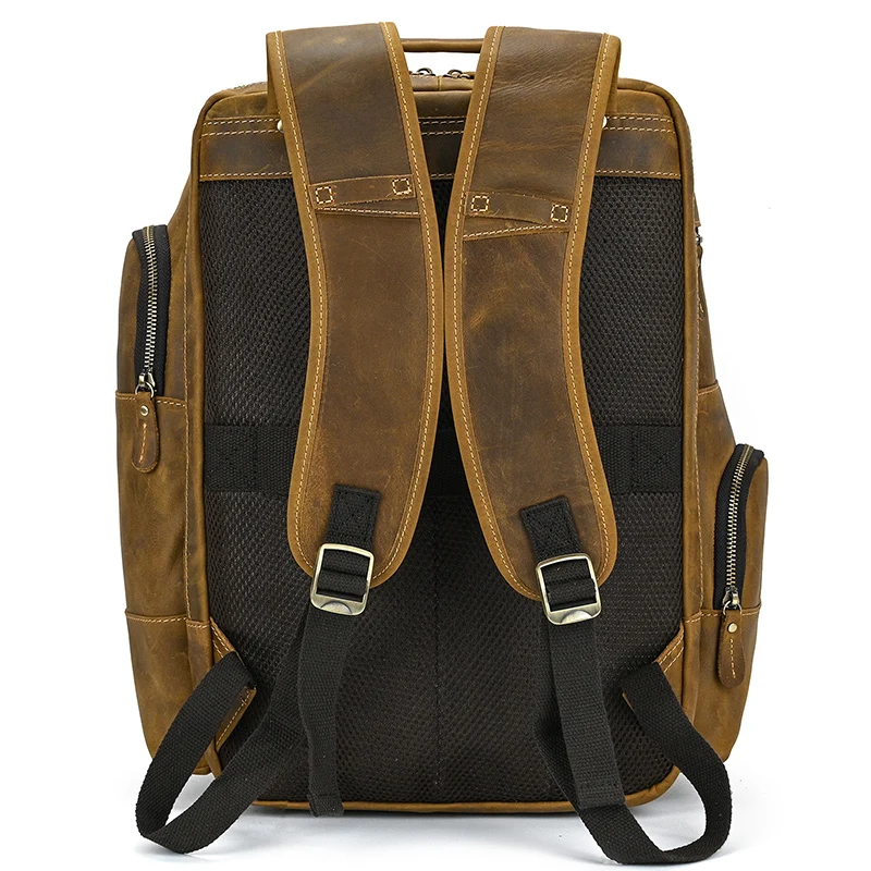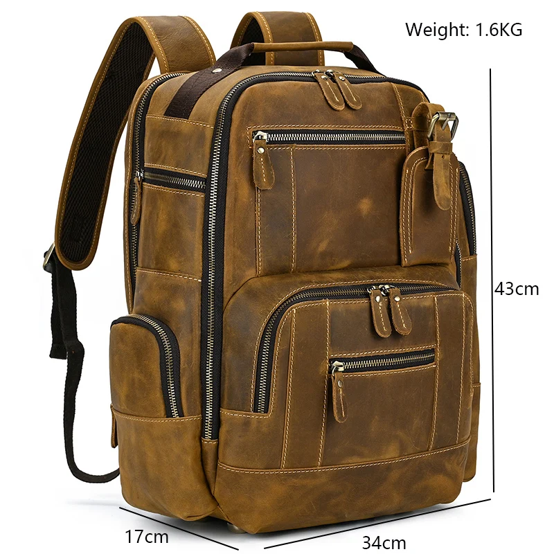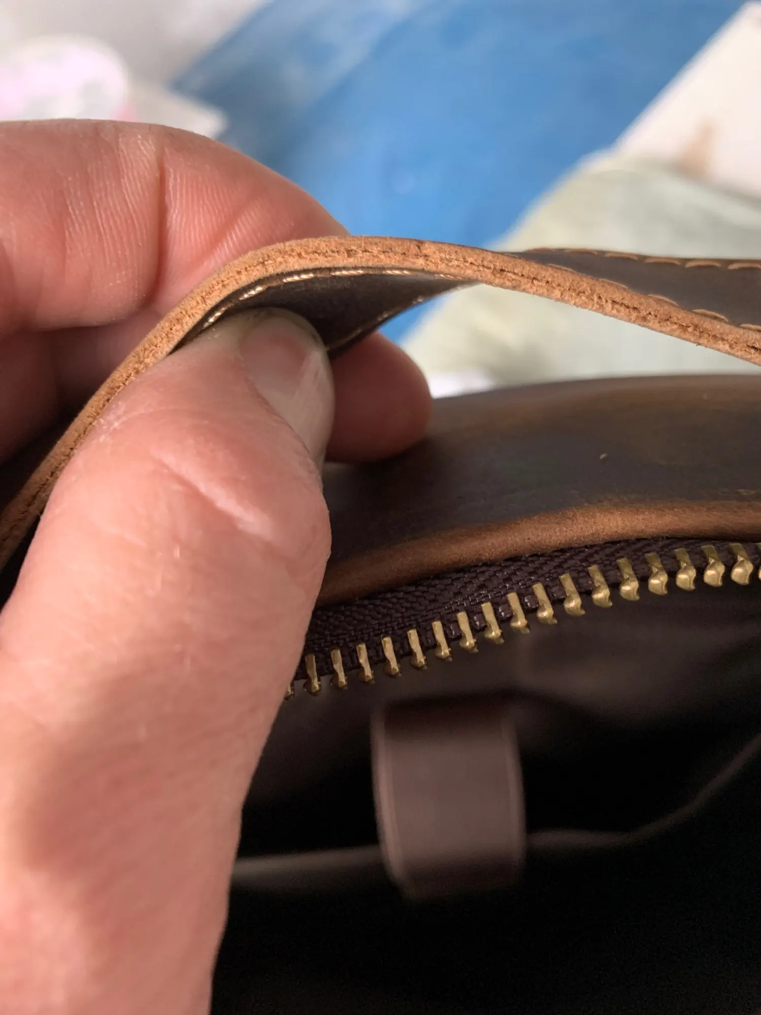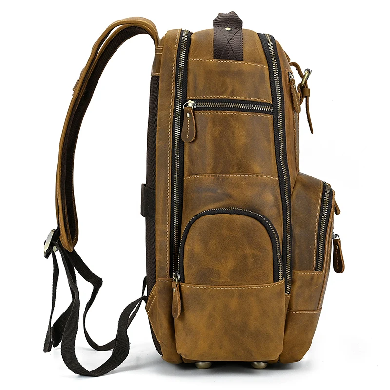Рюкзак очень крутой, качество на высоте (ровные строчки, нитки ни где не торчат), я очень доволен. Смотрится дорого-богато. Брутальная толстая кожа, тракторные замки золотого цвета хорошо сочетаются с темно коричневым цветом