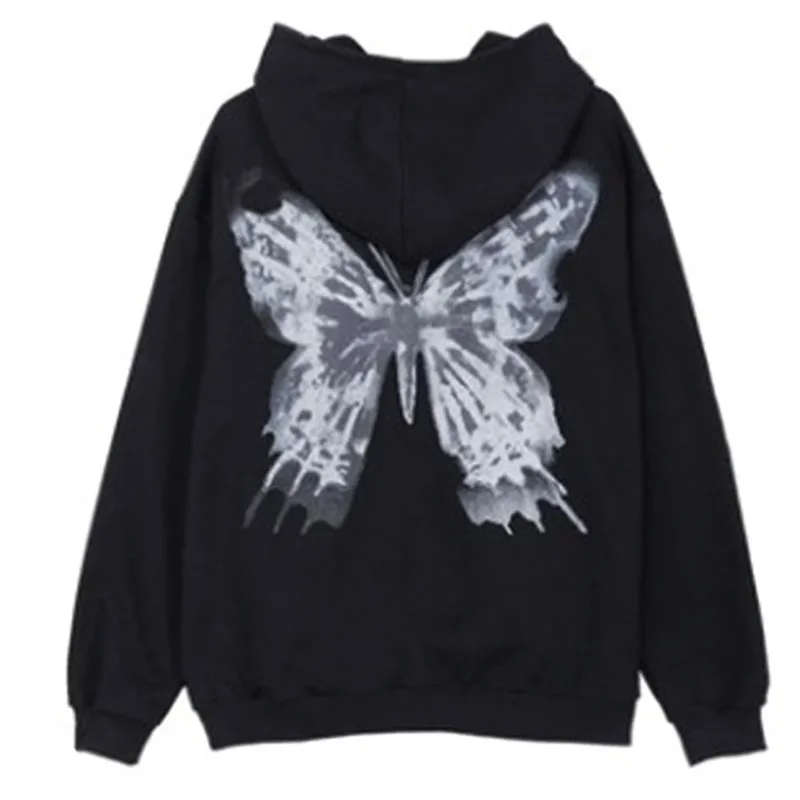 Женские толстовки с принтом бабочки гранж-панк в стиле хип-хоп толс...