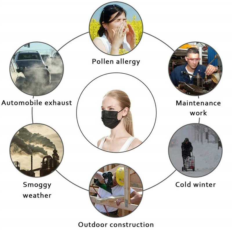 Черная 3-слойная маска со ртом для лица, одноразовые противопылевые...
