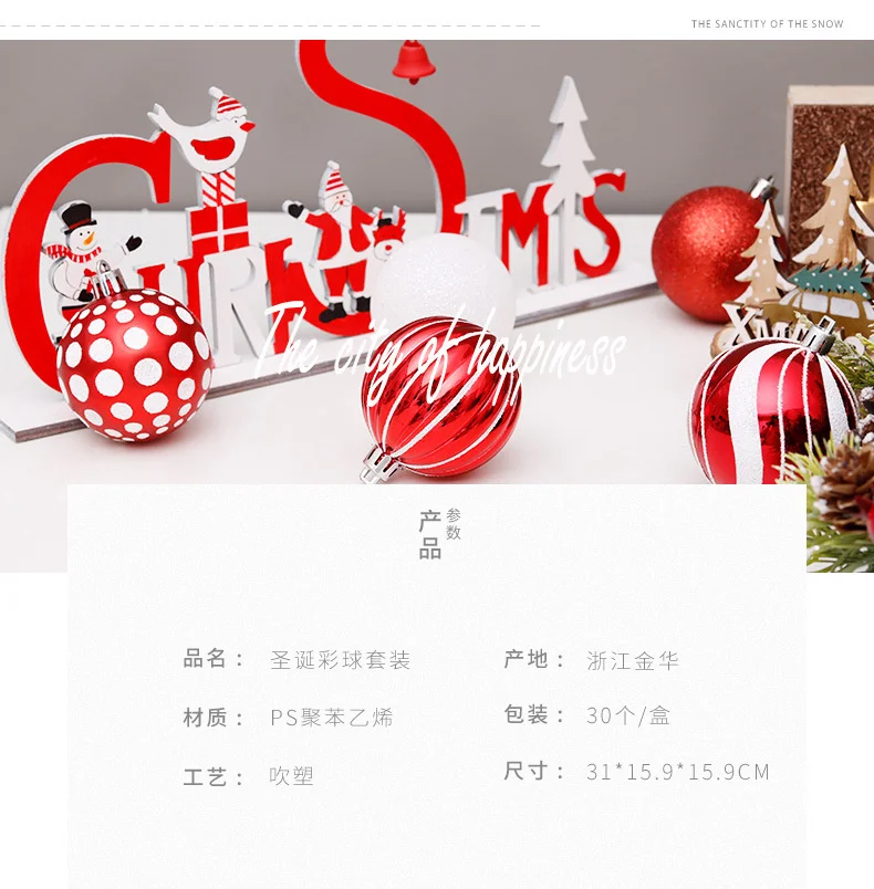 Набор рождественских шаров для елки, 6 см, 30 шт., рождественские у...