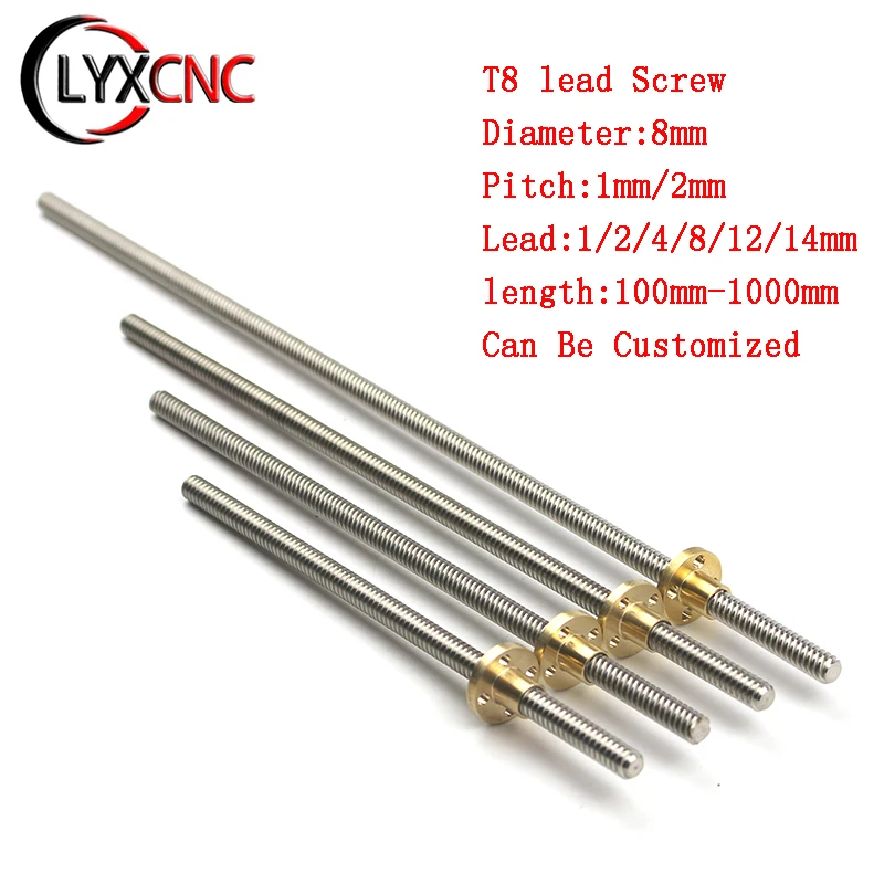 Ходовой винт T8, диаметр 8 мм, ходовой 12481214 м, шаг 12 мм, длина 100-1000 мм, трапециевидный винт с латунной гайкой для 3D-принтера