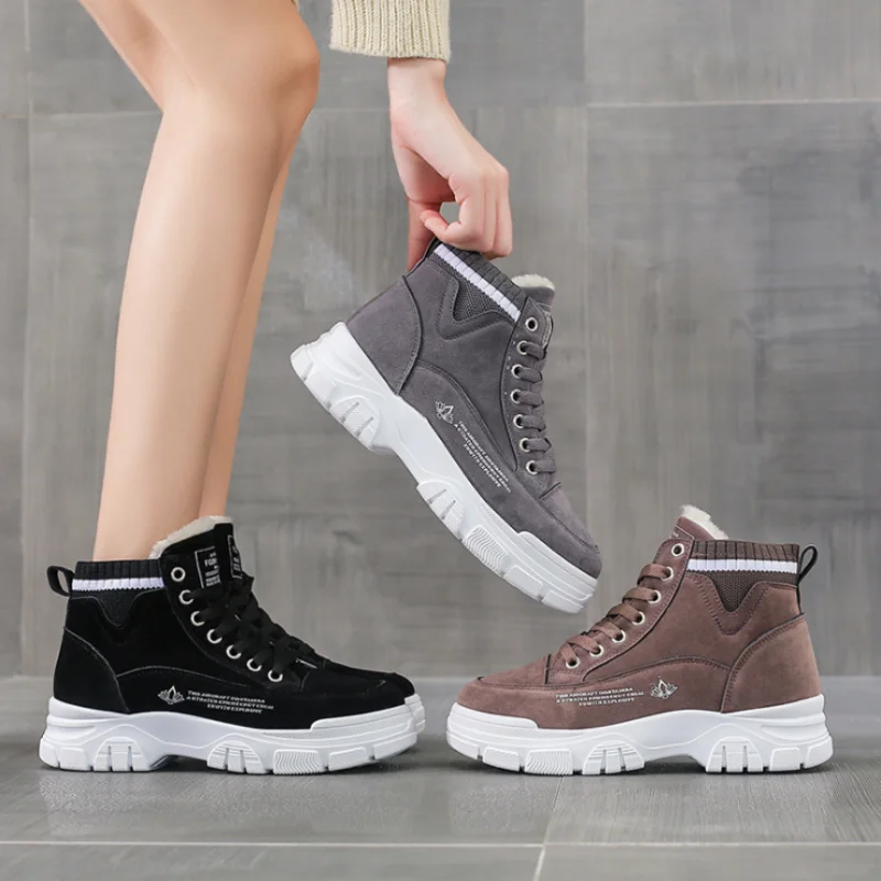 Зимняя женская обувь из хлопка плюс бархатные повседневные кроссовки на шнуровке Водонепроницаемые Универсальные на толстой подошве женская мягкая обувь