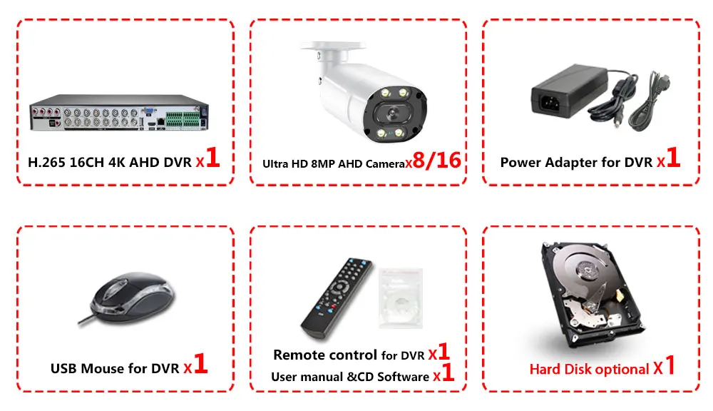 AHD DVR ResolutionH.265 16CH 4K DVR