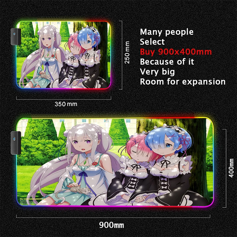 Большой коврик для мыши со светодиодной подсветкой, в стиле аниме