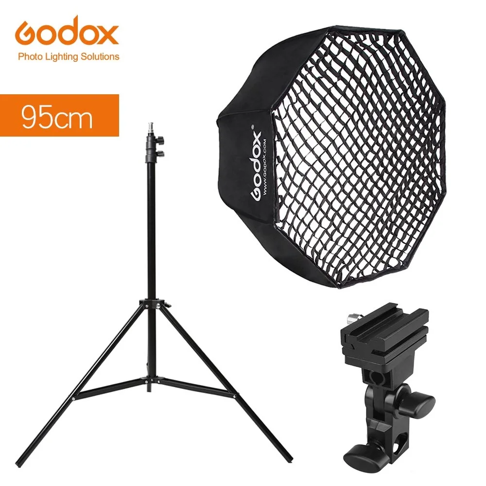 Портативный восьмиугольный софтбокс Godox 95 см 37,5 дюйма с сотовой сеткой, подставка светильник, кронштейн держателя горячего башмака для вспышки