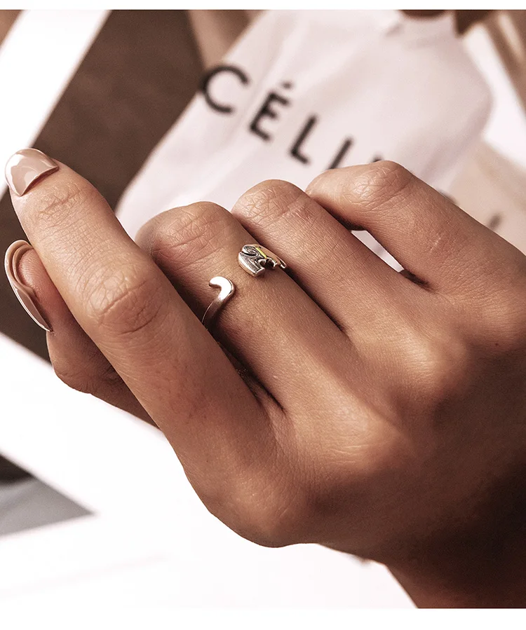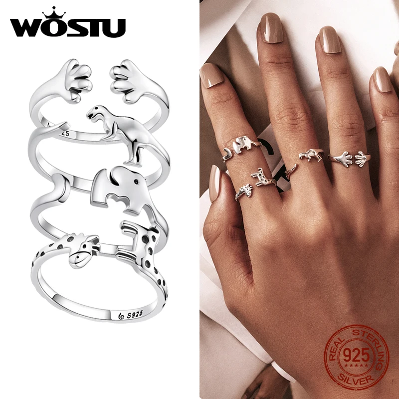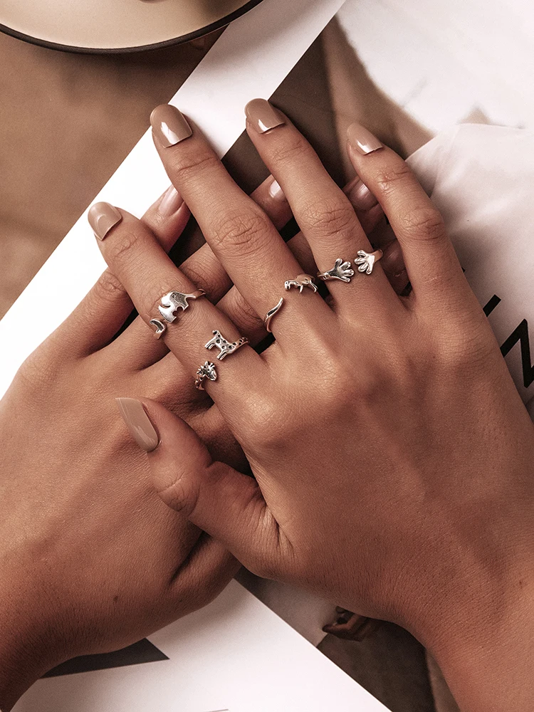 Женские открытые кольца в виде животных, щенка, лапы, динозавра, слона, жирафа