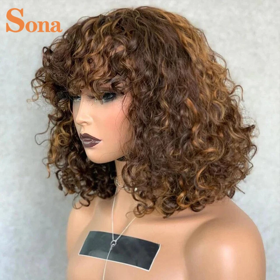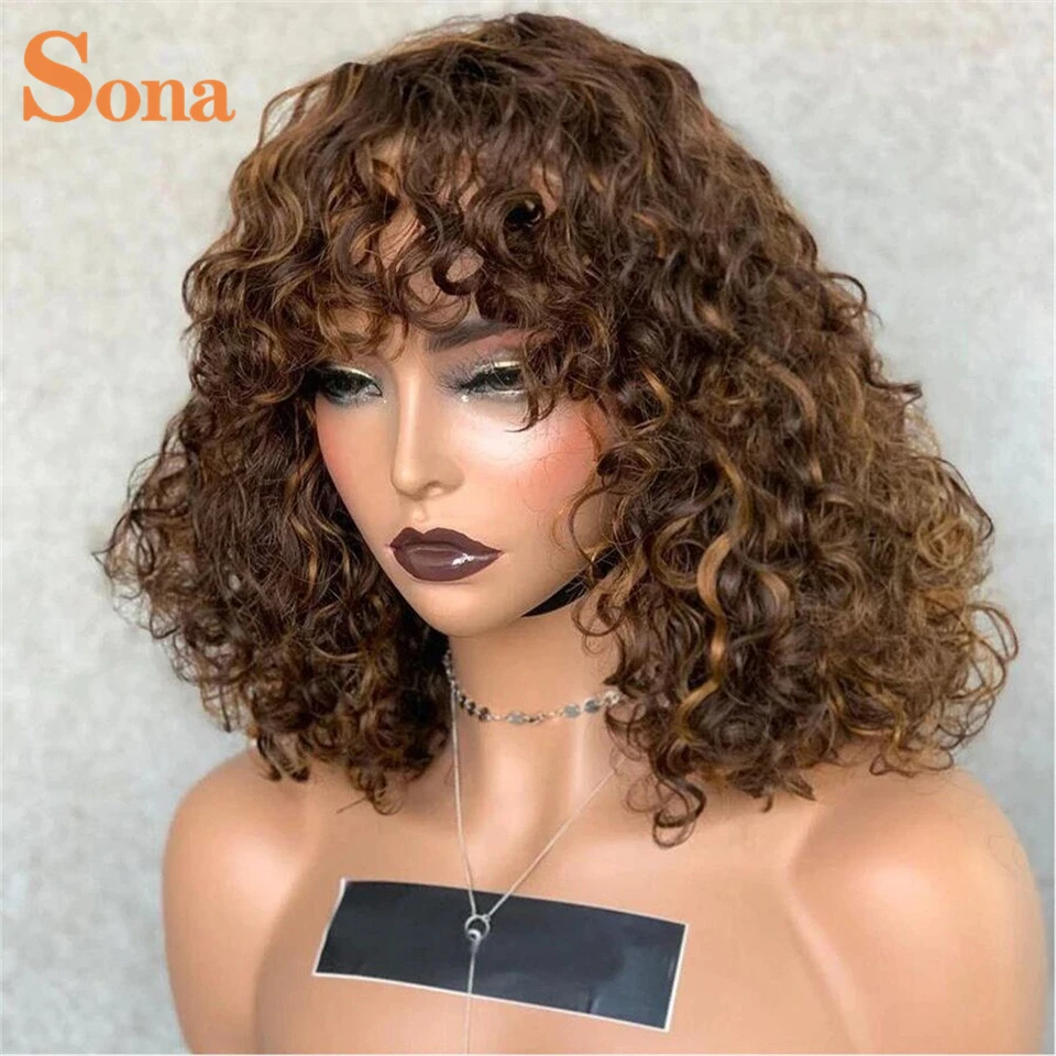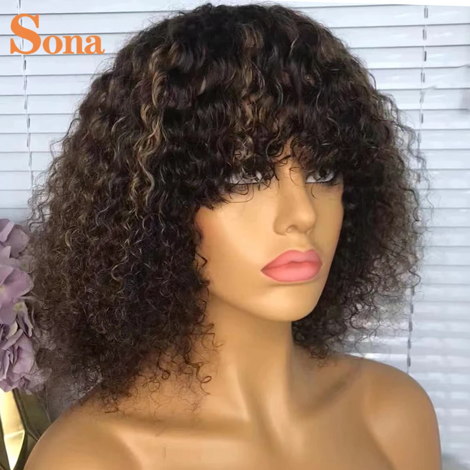 Парики короткие из человеческих волос с челкой, без шнуровки, 99J