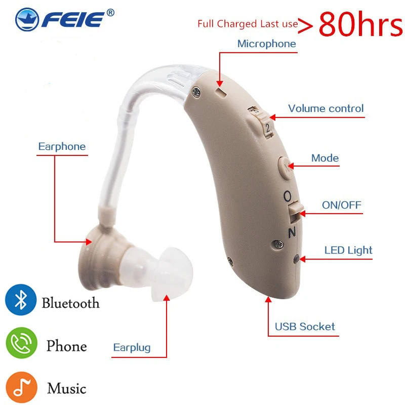 USB Портативный Перезаряжаемые слуховые аппараты усилитель беспроводной bluetooth-связи за ухом для пожилых ушной уход S-25A