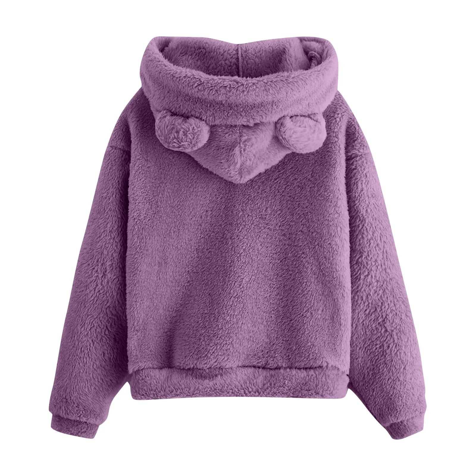 Плюшевая Толстовка Bear Ear, милая Женская Повседневная Толстовка с капюшоном, однотонная одежда с длинным рукавом и капюшоном для сохранения тепла зимой