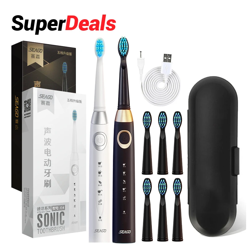 Зубная щетка Seago SG-E4 звуковая электрическая с зарядкой от USB, 5 режимов, 8 насадок