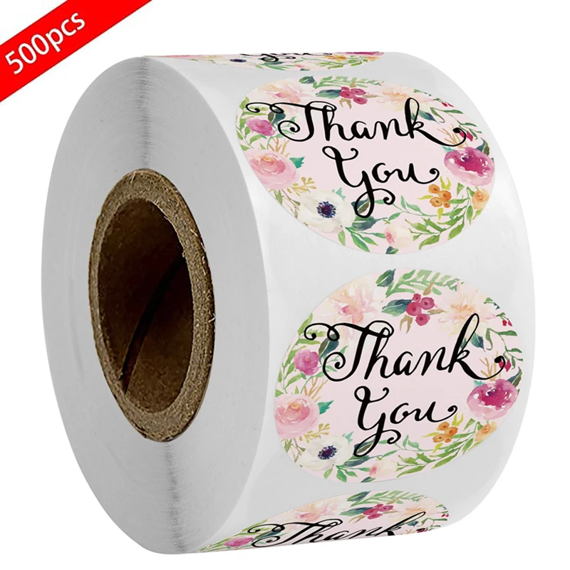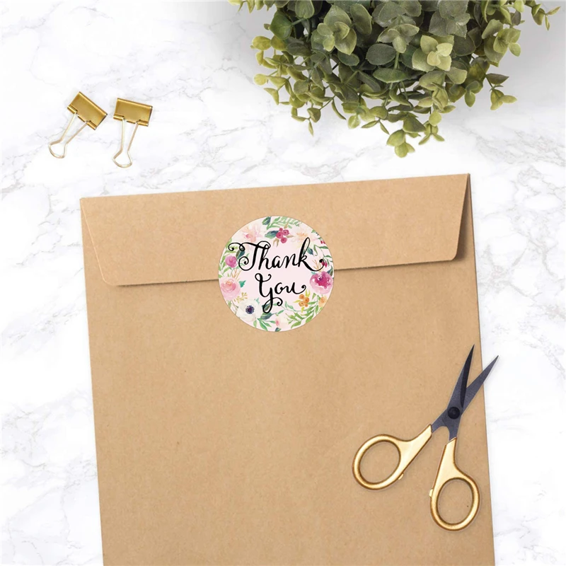 Круглые Цветочные наклейки с надписью Thank You, красивые наклейки-этикетки в виде конверта, Стикеры для свадебной вечевечерние НКИ, 500 шт.