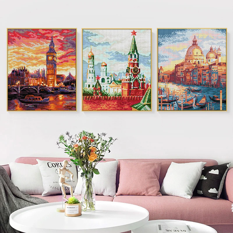 Набор для вышивки крестиком 14CT 11CT, набор для рукоделия с архитектурным пейзажем, холст с принтом, ручная работа, домашний декор, подарки
