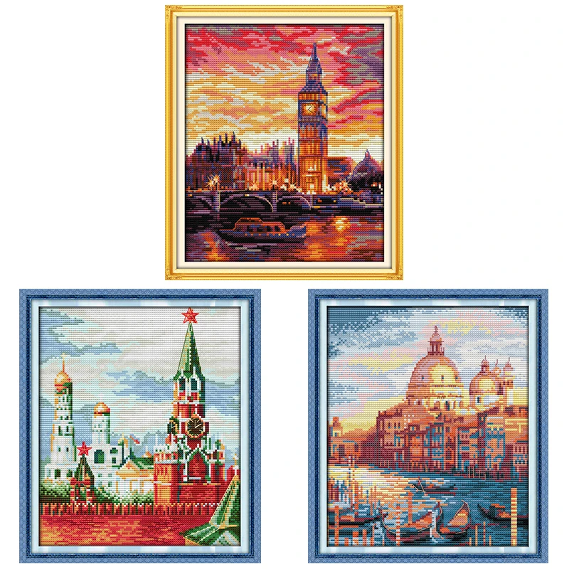 Набор для рукоделия, архитектурные пейзажи, Набор для вышивки крестиком 14CT 11CT, ткань с принтом, ручная вышивка, набор для домашнего декора, подарки Название бренда:Вышивка крестиком Joy Sunday