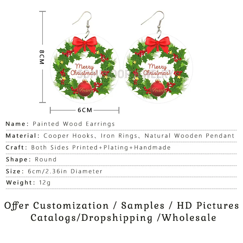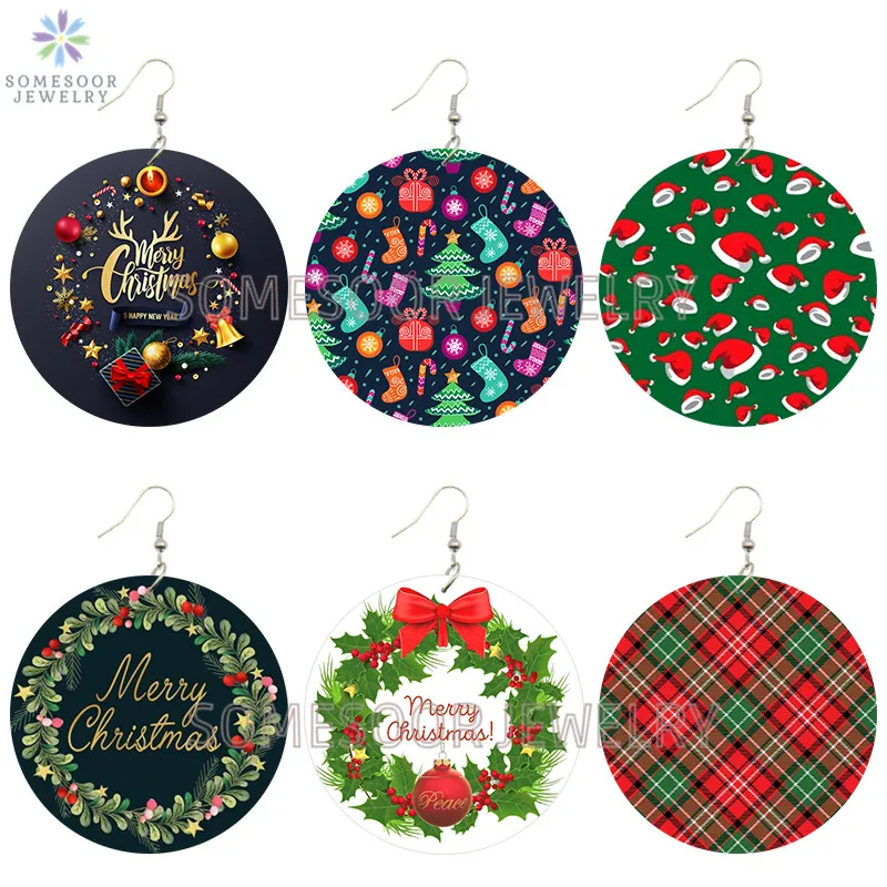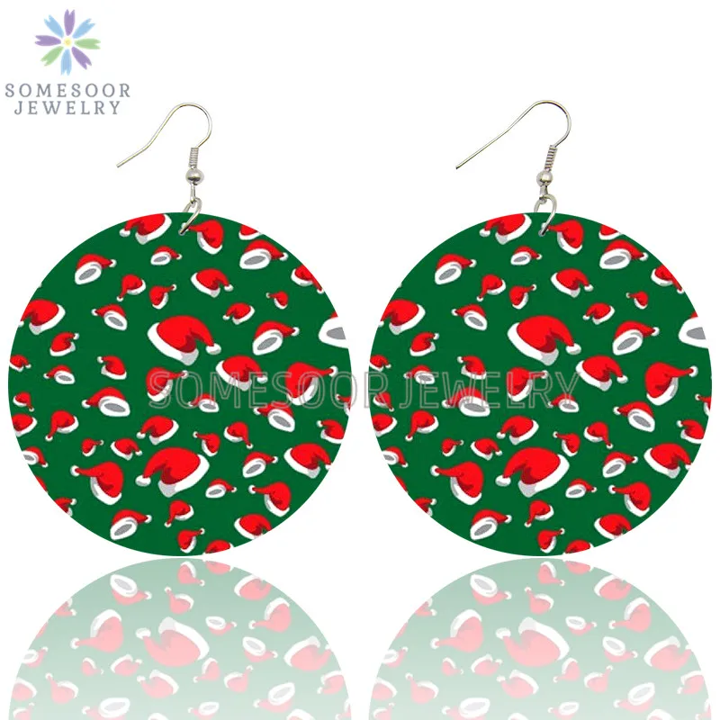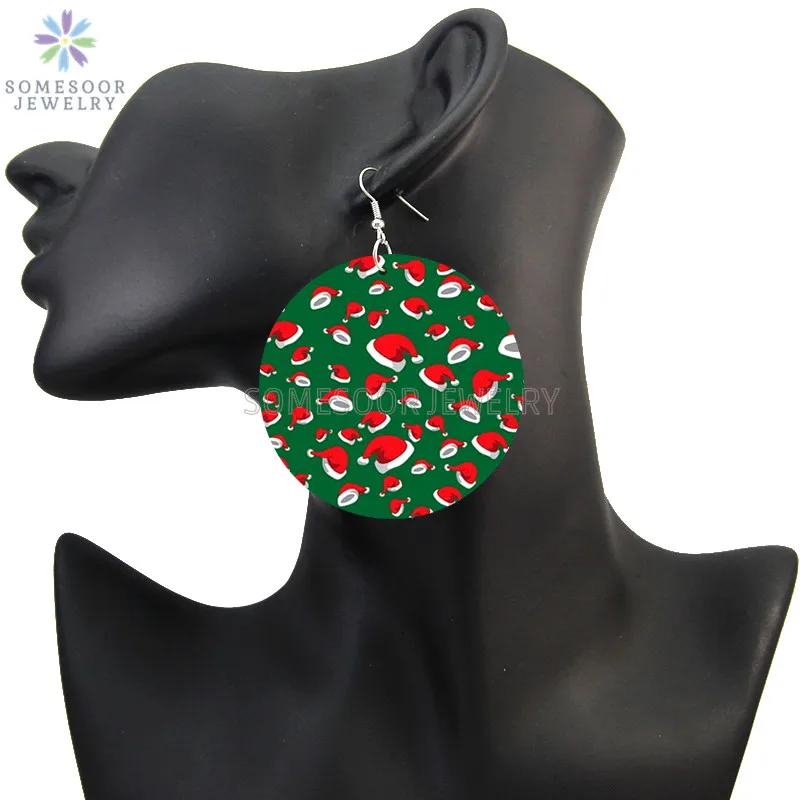 SOMESOOR милые рождественские шляпы с принтом деревьев богемные афро деревянные висячие серьги Санта Клаус колокольчики петли для женщин Подарки для детей