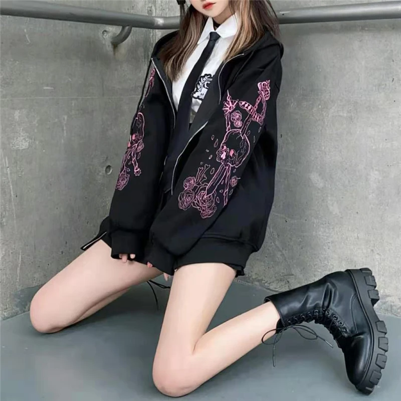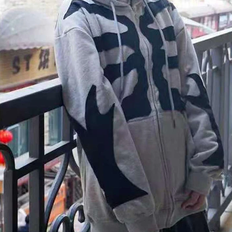 Номер моделиRhinestone Skeleton Zip Up Oversized Hoodie Retro Clothes Pullover