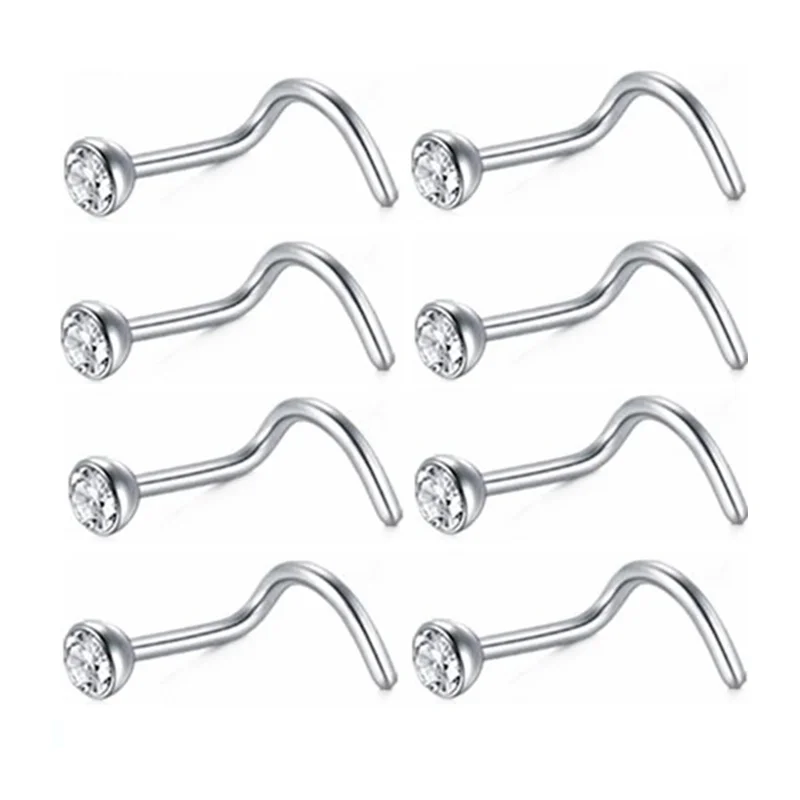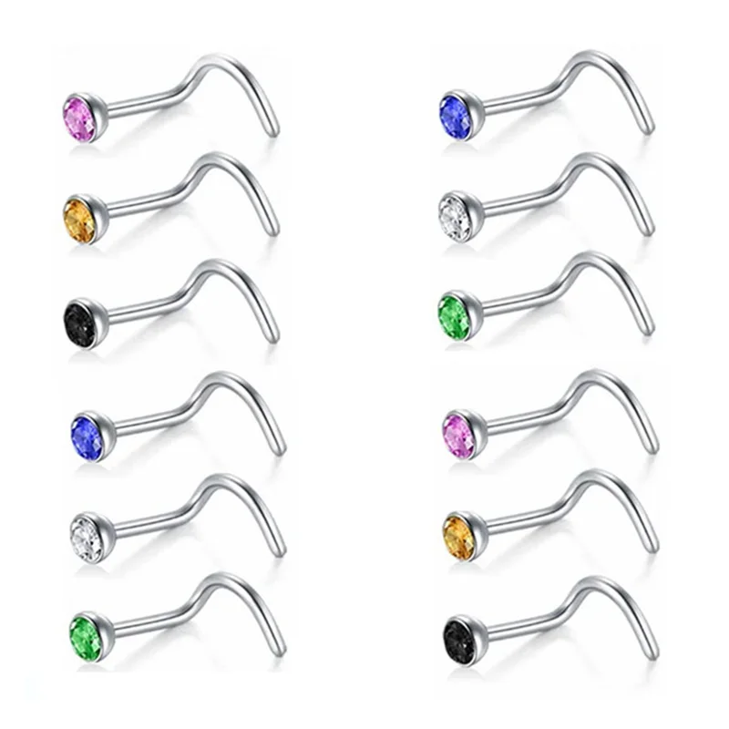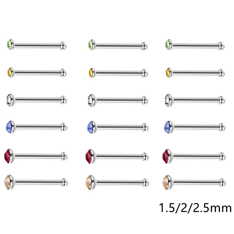 122436 шт., L-образное кольцо для носа, набор прямых колец для носа с кристаллами, серьги-гвоздики для пирсинга, клипса для носа