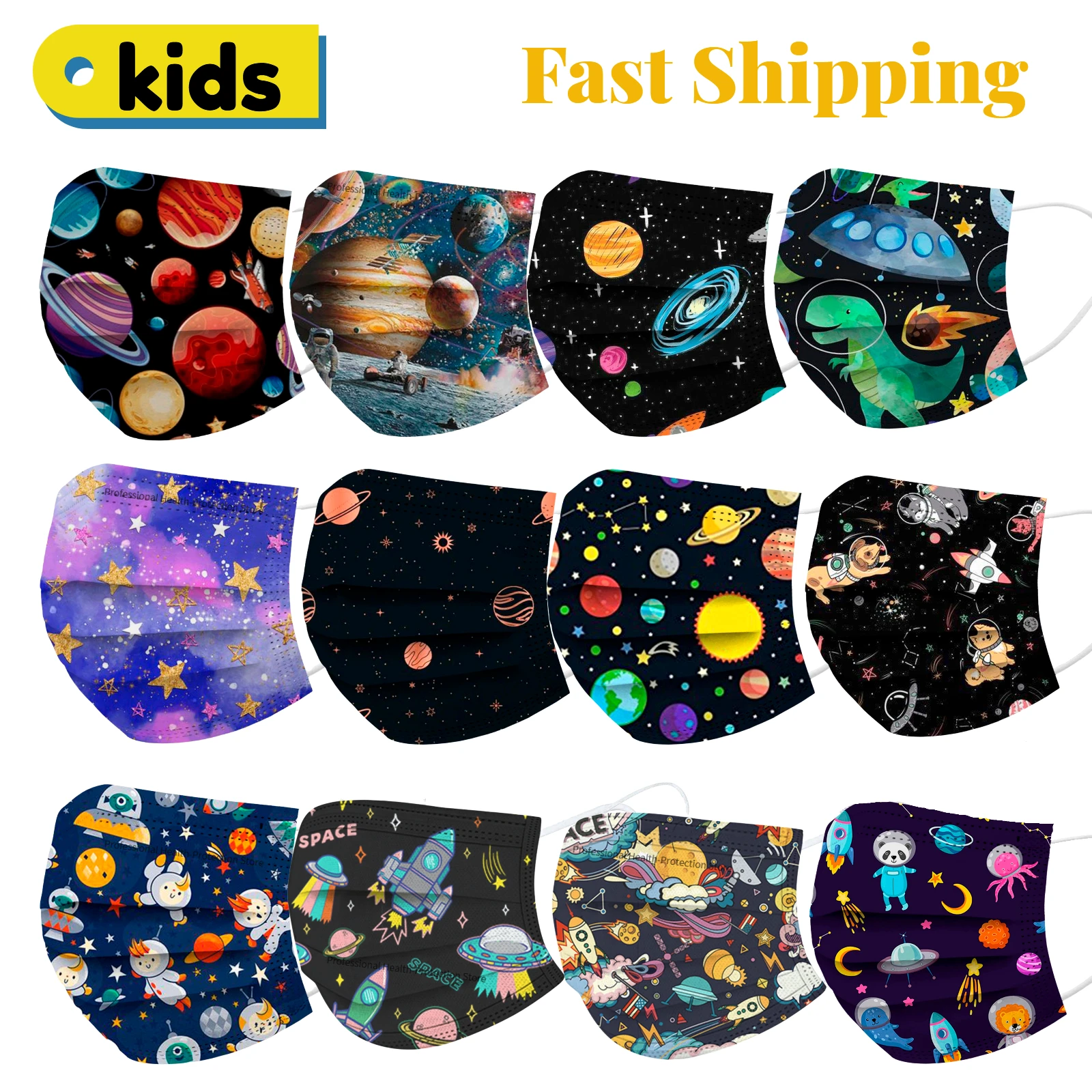 10-50 шт., детские одноразовые маски для лица, 3 слоя