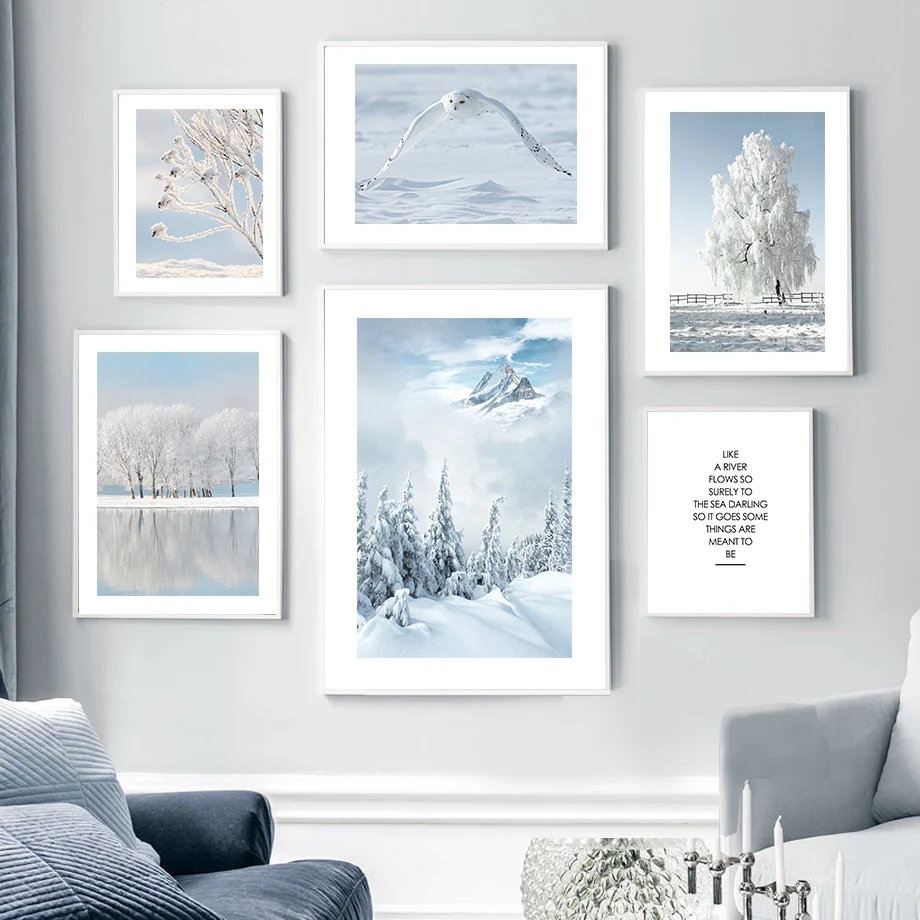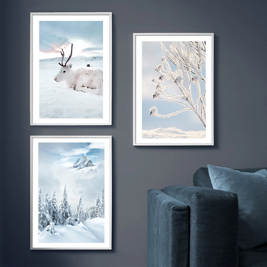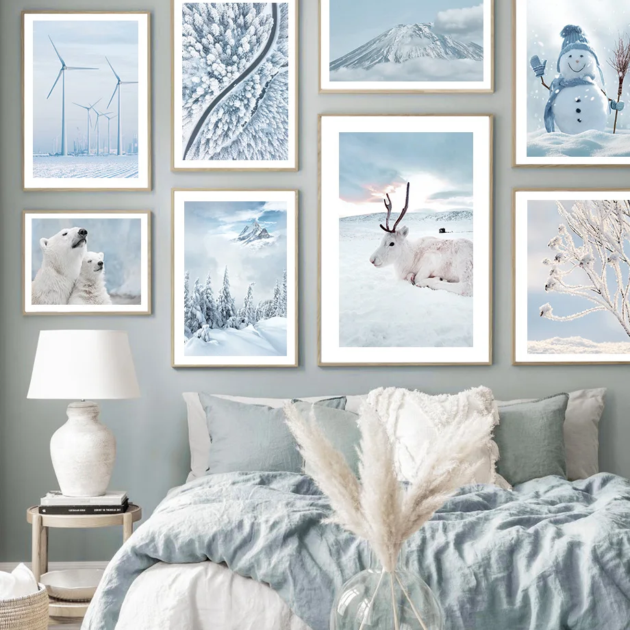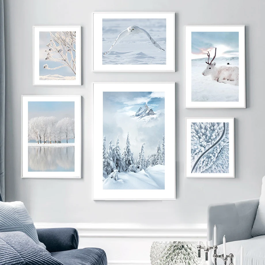 Зимние сосновые деревья олень Орел полярный медведь снег настенная живопись на холсте скандинавские плакаты и принты настенные картины декор для гостиной