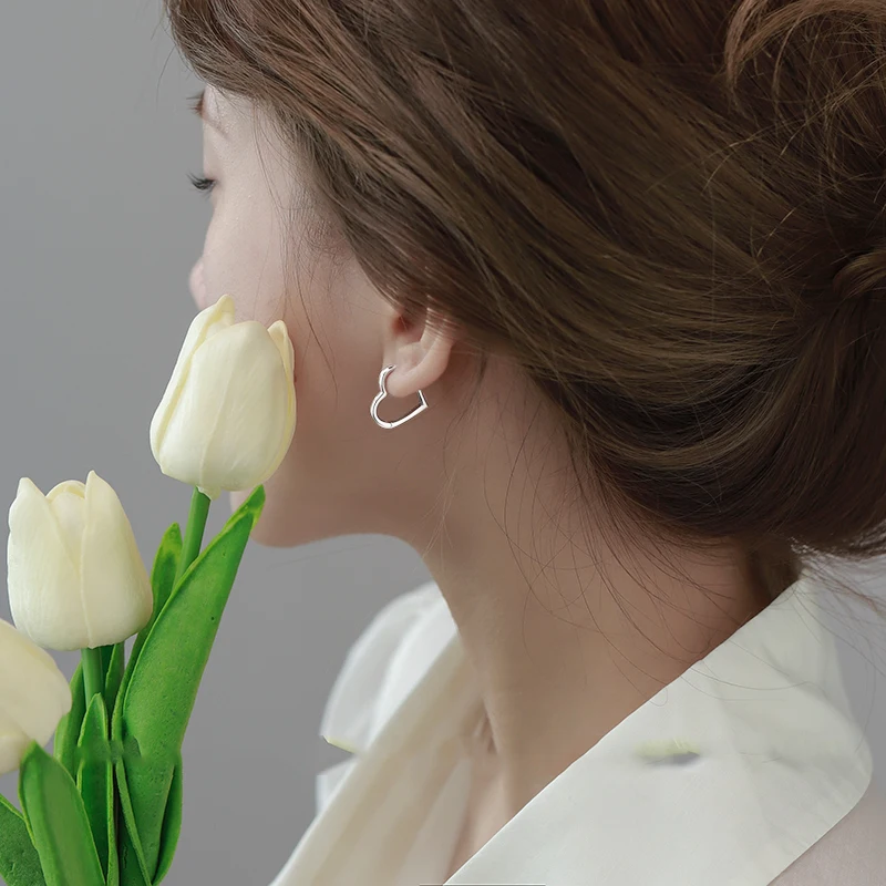 Женские серьги-гвоздики из серебра 925 пробы, в виде сердца
