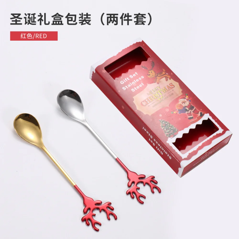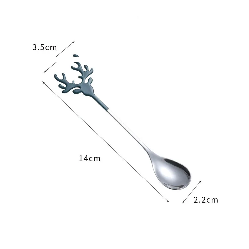 2 шт./набор, ложка для перемешивания из нержавеющей стали, форма головы оленя, Рождественская лося, кофейная десертная ложка, инструмент для бармена, чайная ложка, инструмент для бараОписание