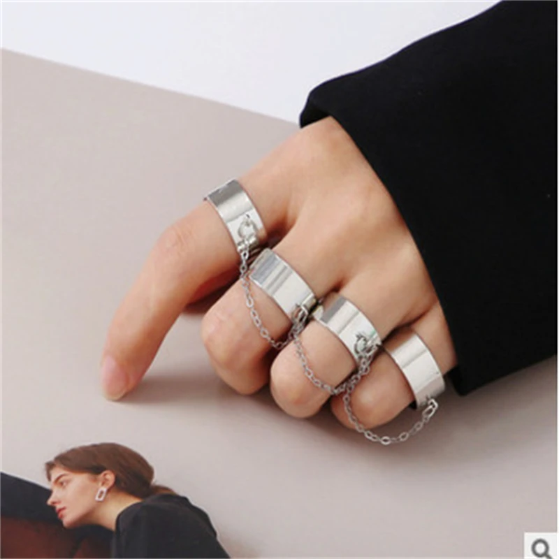 Sindlan 4 шт. Панк Серебряный цвет цепь кольца для женщин простой х...
