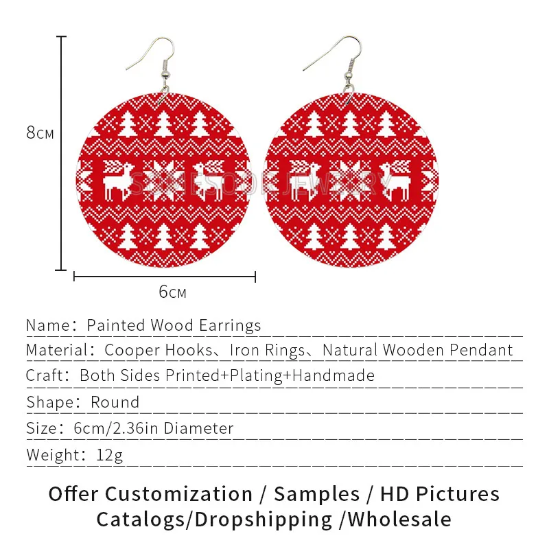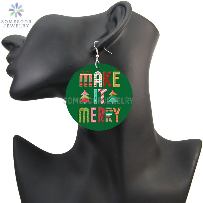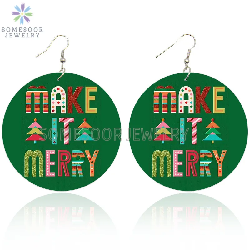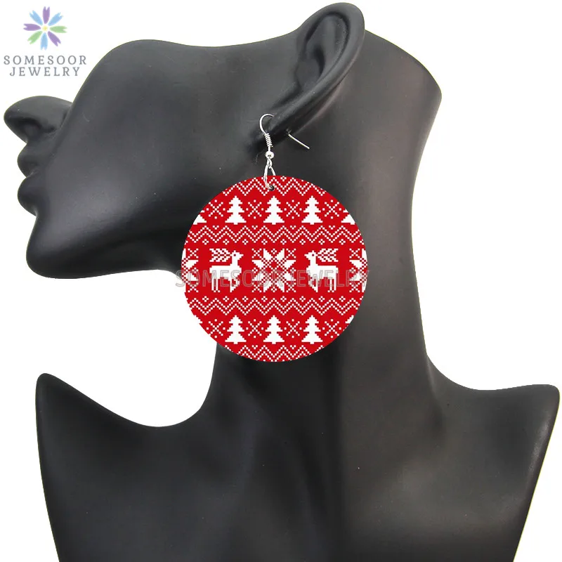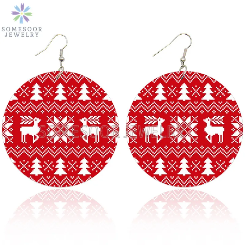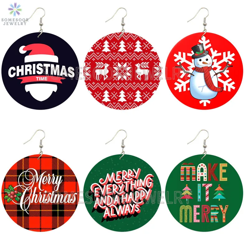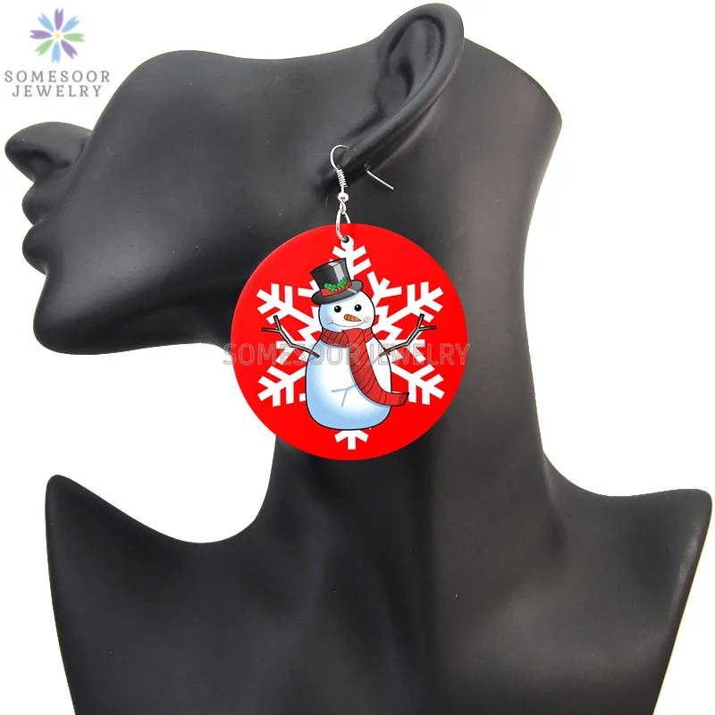 Рождественские деревянные висячие серьги SOMESOOR, милые украшения с принтом снеговика, Санта-Клауса, Висячие петли для детей, подарок на Новый год