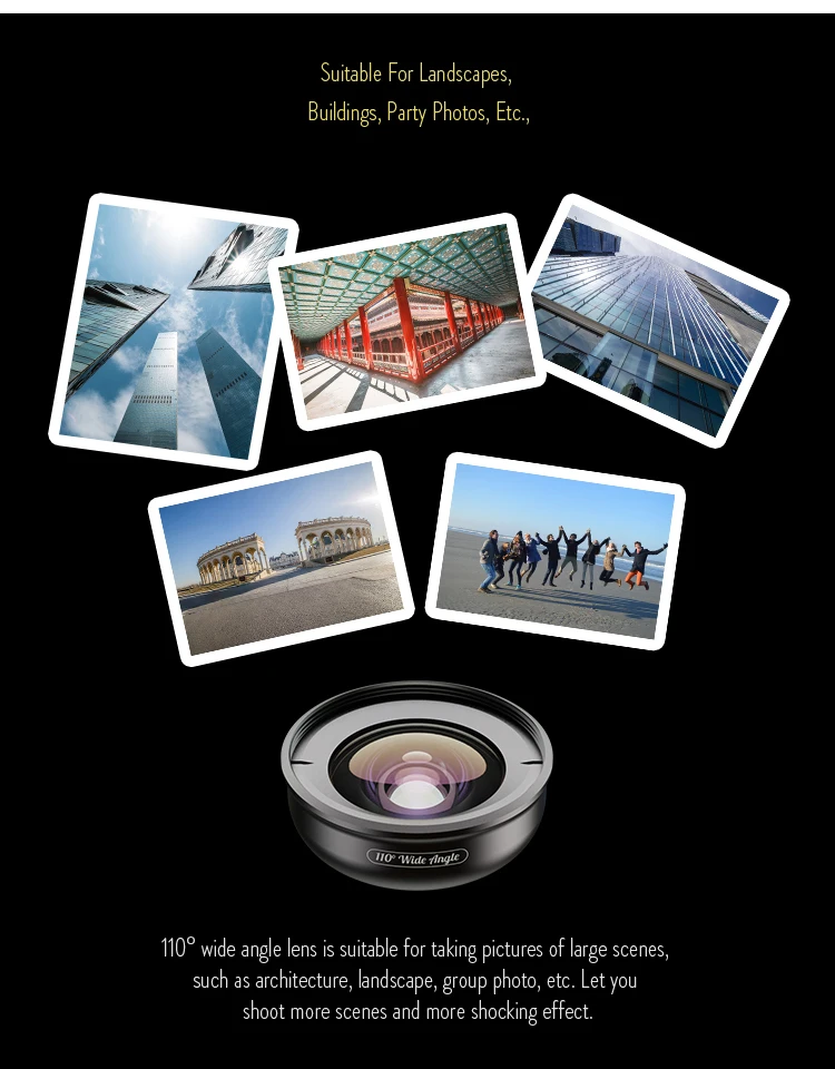 【Нет темных краев, Нет искажений 】 этот широкоугольный объектив захватывает еще 2x изображение с многослойным стеклянным дизайном, который обеспечивает четкость края. Наши линзы изготовление под заказ с праздничное 4-слойное Платье Кино Качественное Стекло и аэрокосмической металл