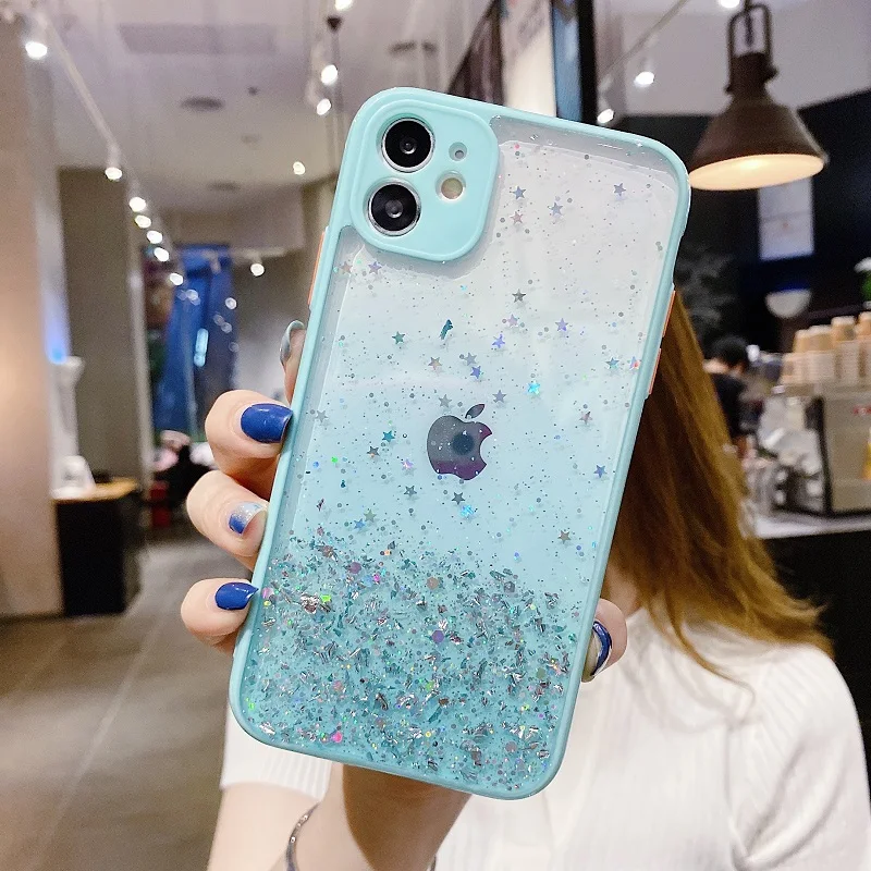 Роскошный блестящий чехол со звездами для iPhone 13, 12, 11 Pro Max, X, XS, XR, 6 s, 7, 8 Plus, SE, 2020 дюйма, Женский Прозрачный жесткий чехол для девушек
