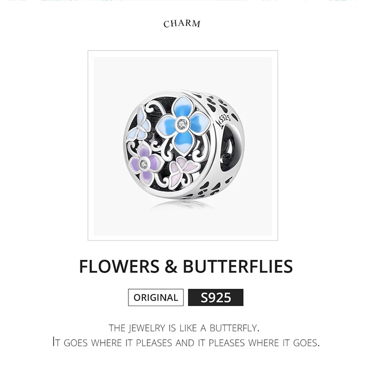 Бусины-подвески женские из серебра 925 пробы в виде бабочек