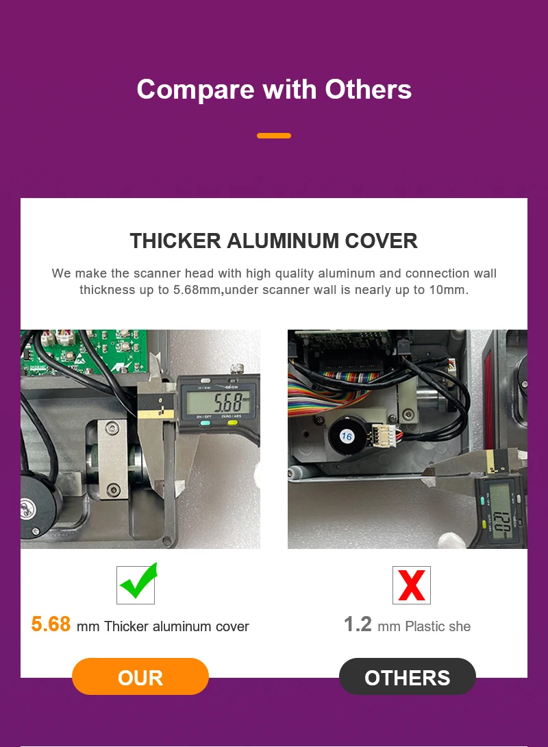 Толстая алюминиевая головка сканераМы производим головку сканера с высококачественным алюминием и толщиной соединительной стенки до 5,68 мм, под стенкой сканера около 1 мм.