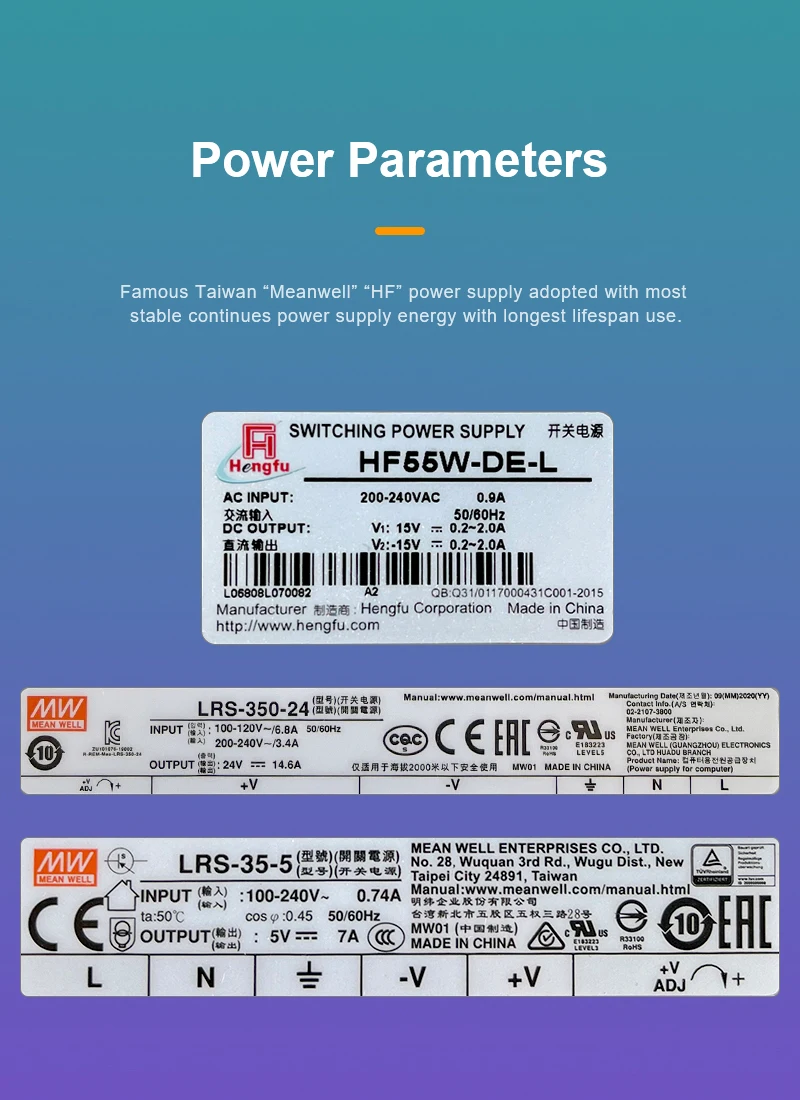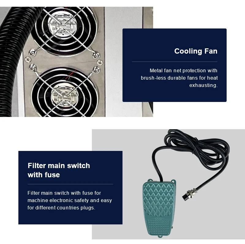Прочная защитная труба для волоконного кабеляПрочный и прочный ножной переключательГлавный выключатель фильтра с предохранителем для электронной безопасности машины и легко для штепсельных вилок разных стран.Металлическая сетчатая защита вентилятора с бесщеточными долговечными вентиляторами для отвода тепла.