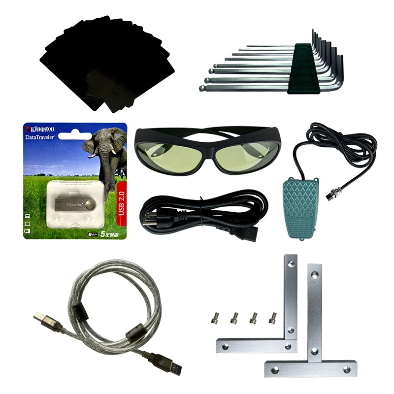 Мы поставляем программное обеспечение с лучшим USB Kingston для вашей безопасности данных.Запасные части для резервного копирования, такие как кнопка резервного копирования для аварийного использования.Позиционирование стержней для легкого определения правильного положения для ваших гравировальных изделий.