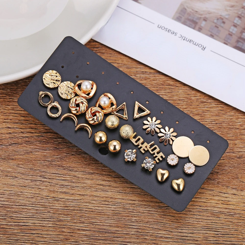 Серьги-гвоздики Delysia King New moon flower Стразы, 14 пар креативных серег в стиле ретро