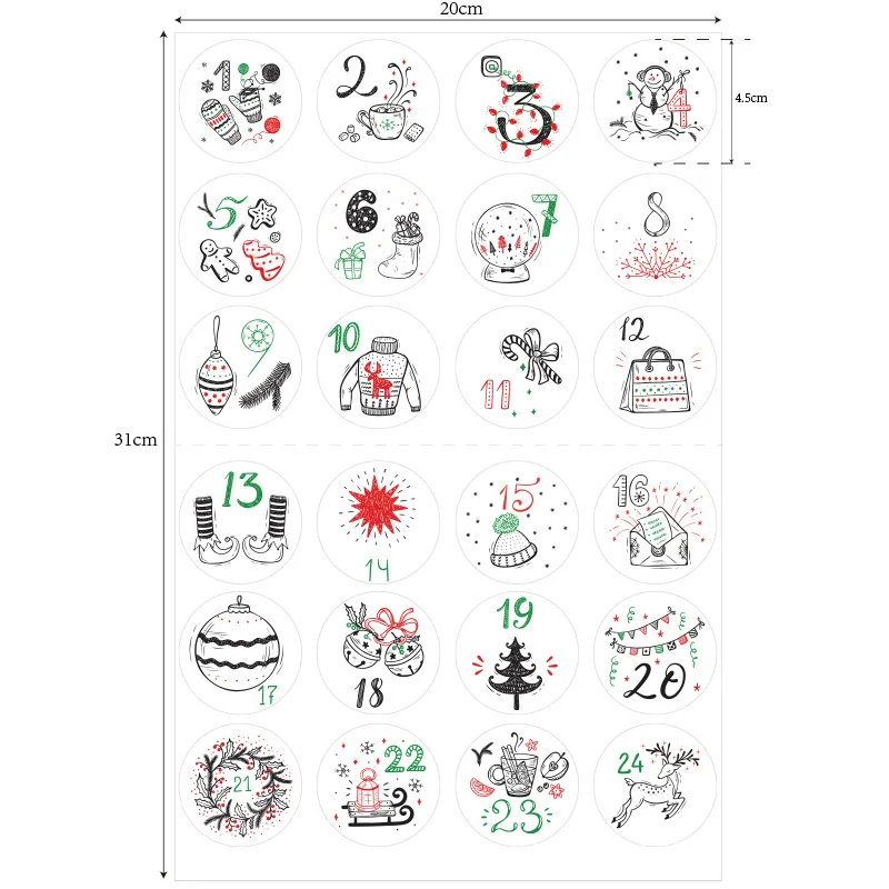 24 шт.компл. с рождеством, наклейка с календарем и цифрами, бумажна...