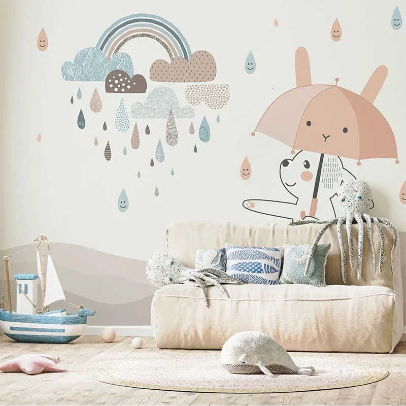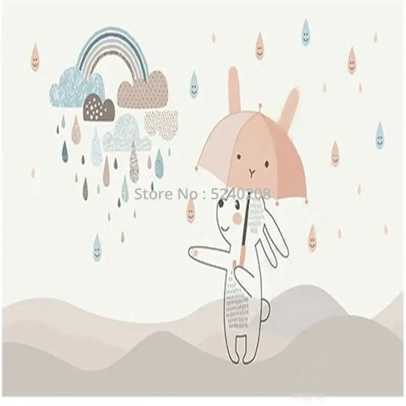 Самоклеящиеся наклейки на стену для детской комнаты, мультяшный 3D-рисунок радуги Банни, наклейки на стену, любой размер на заказ