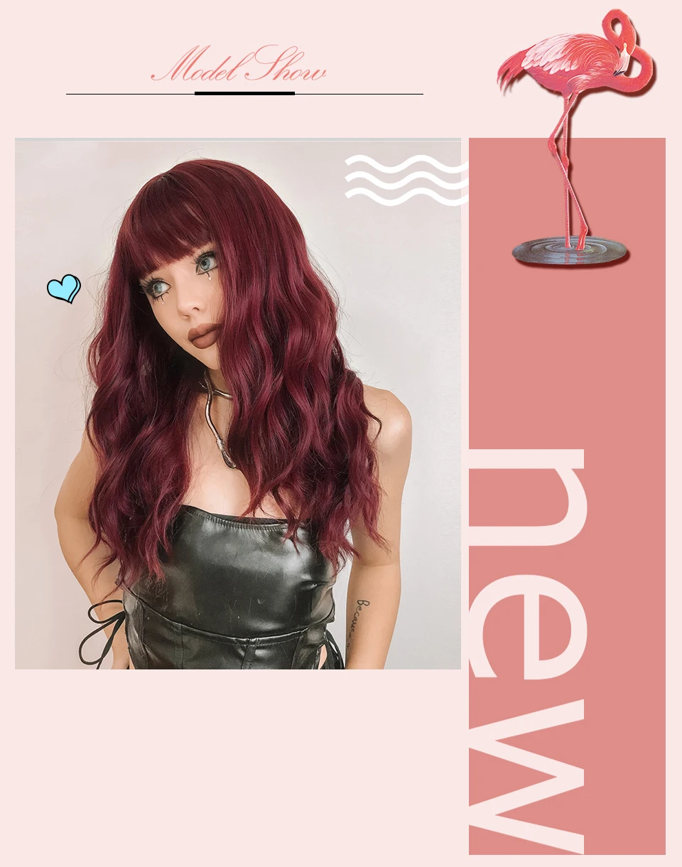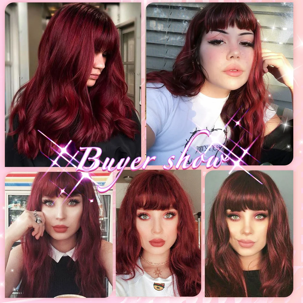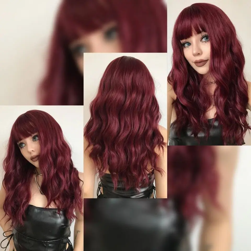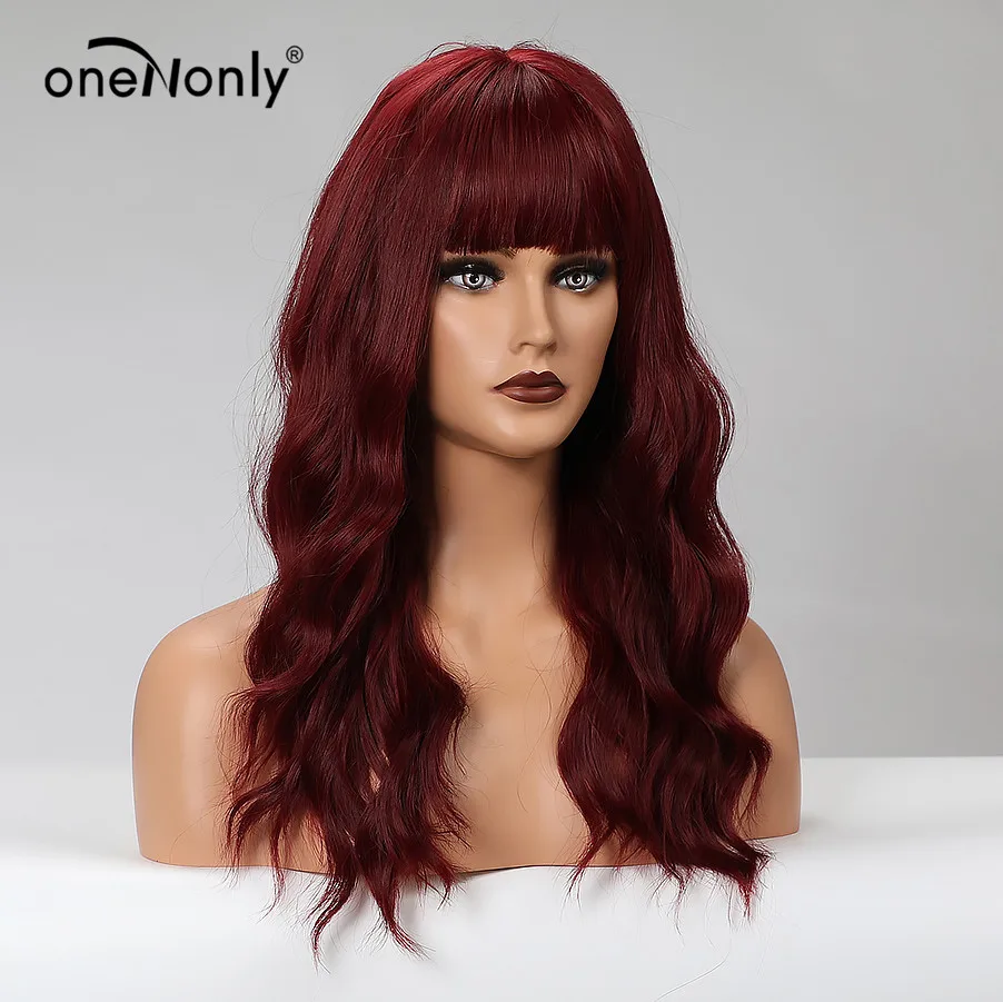 OneNonly волнистый темно-красный парик длинные женские парики с челкой косплей Лолита Хэллоуин натуральные волосы термостойкие