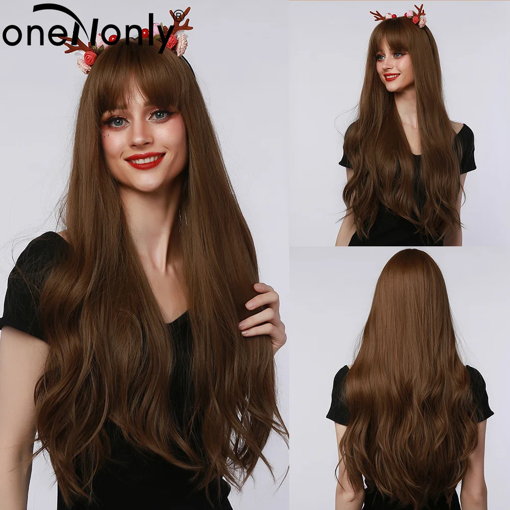 OneNonly синтетические парики для женщин длинные волнистые коричнев...