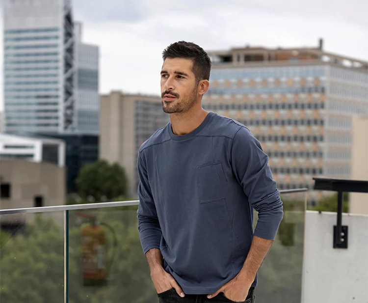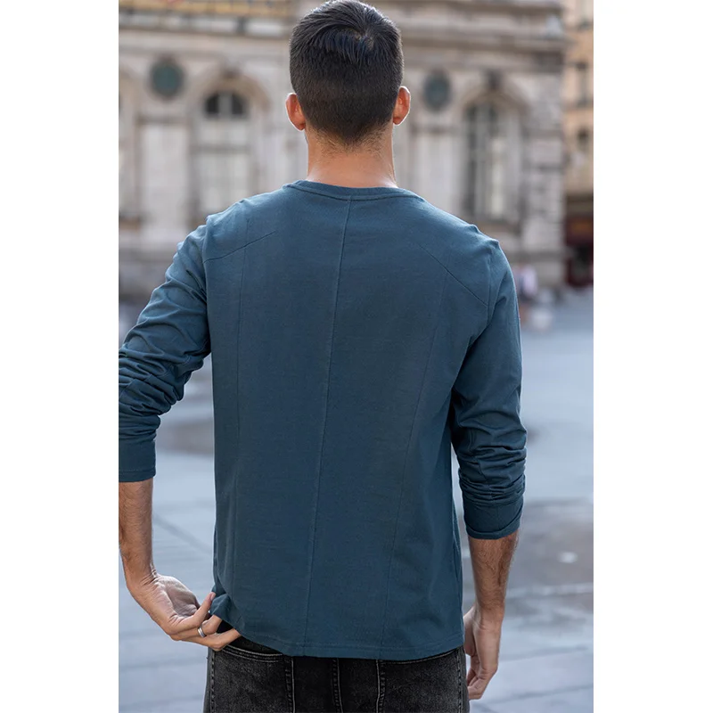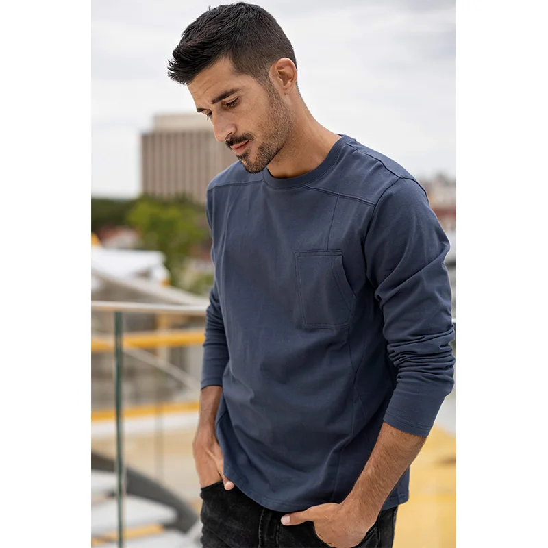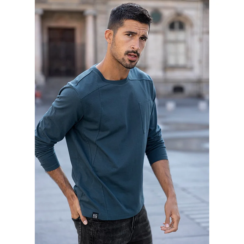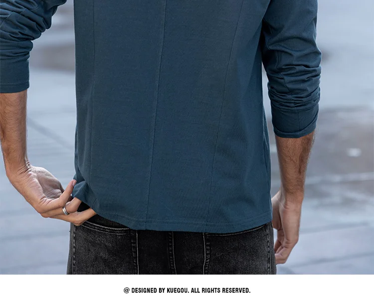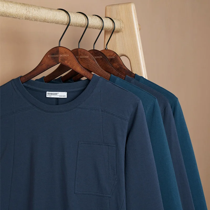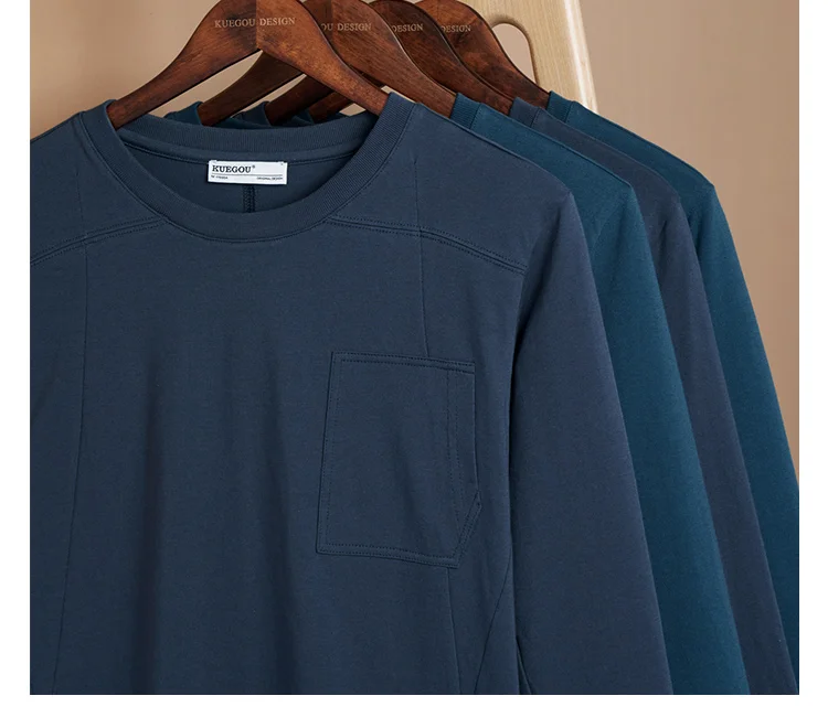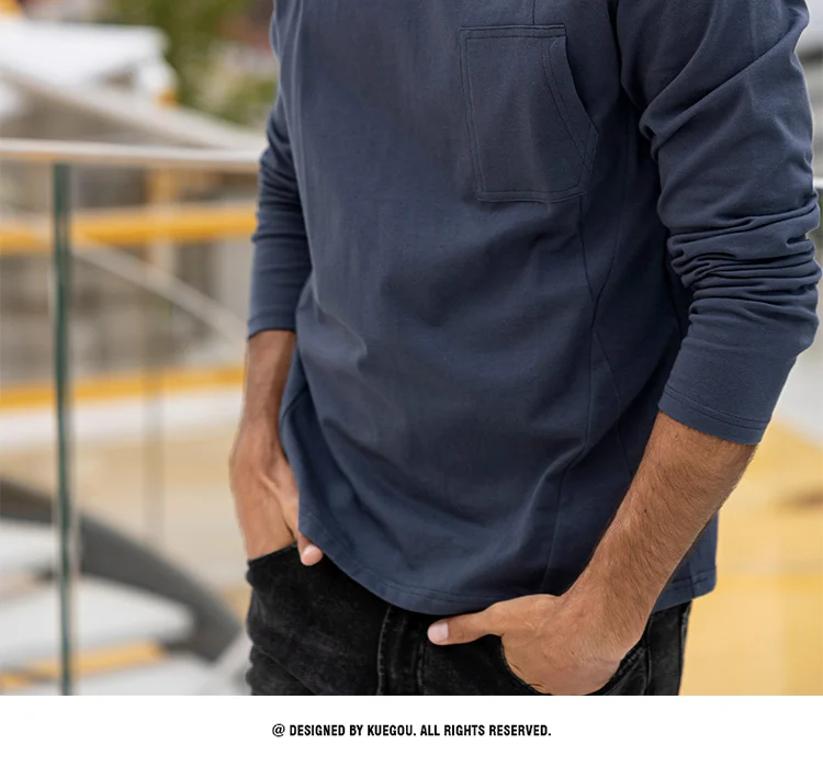 Мужская футболка с длинным рукавом KUEGOU, черная хлопковая футболка с длинными рукавами, с нагрудным карманом, модель 2022, осень 100%