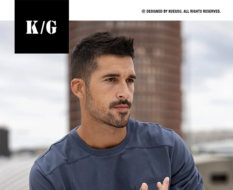 Футболка мужская с длинным рукавом KUEGOU, базовая тенниска из 100%...