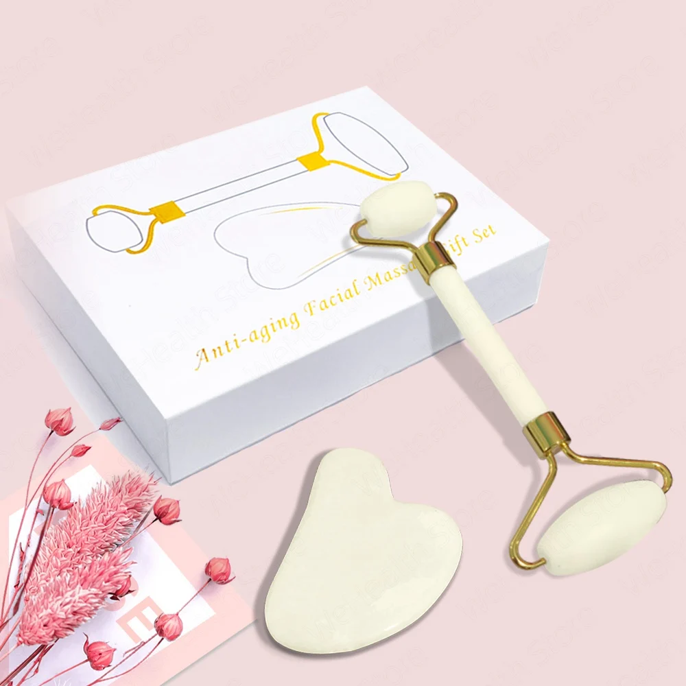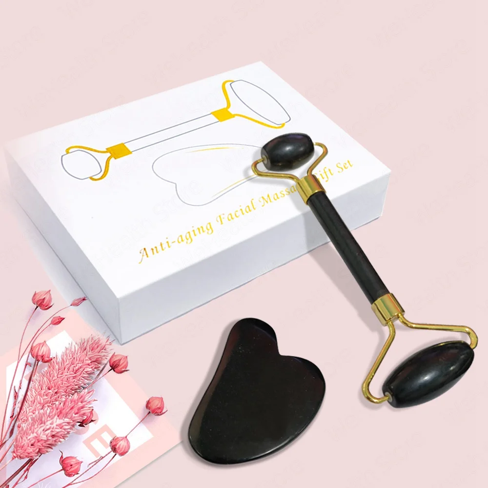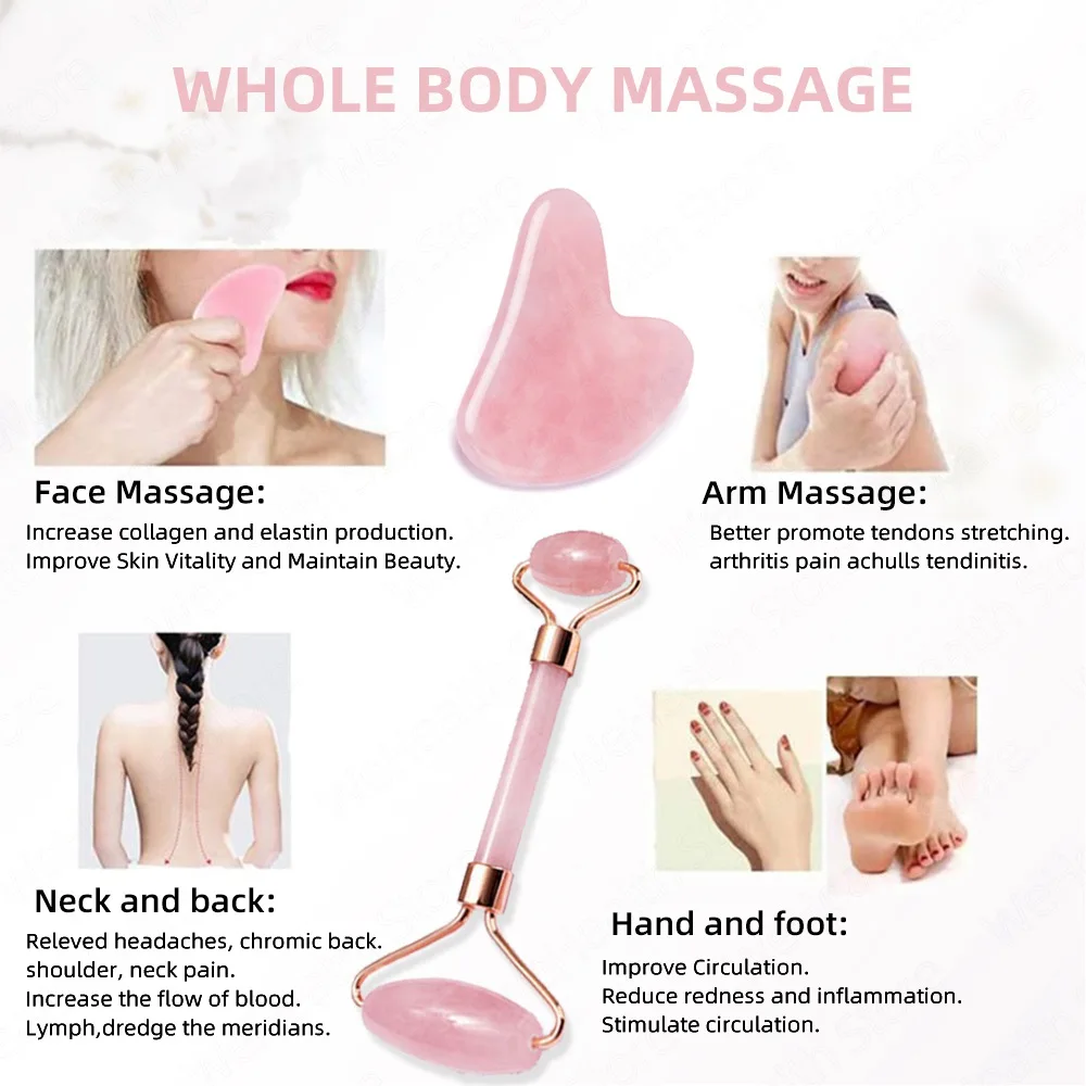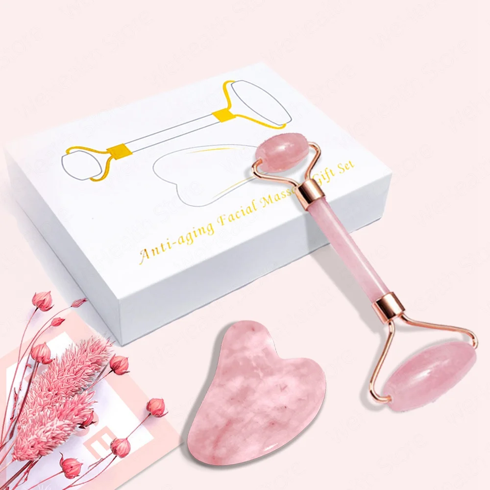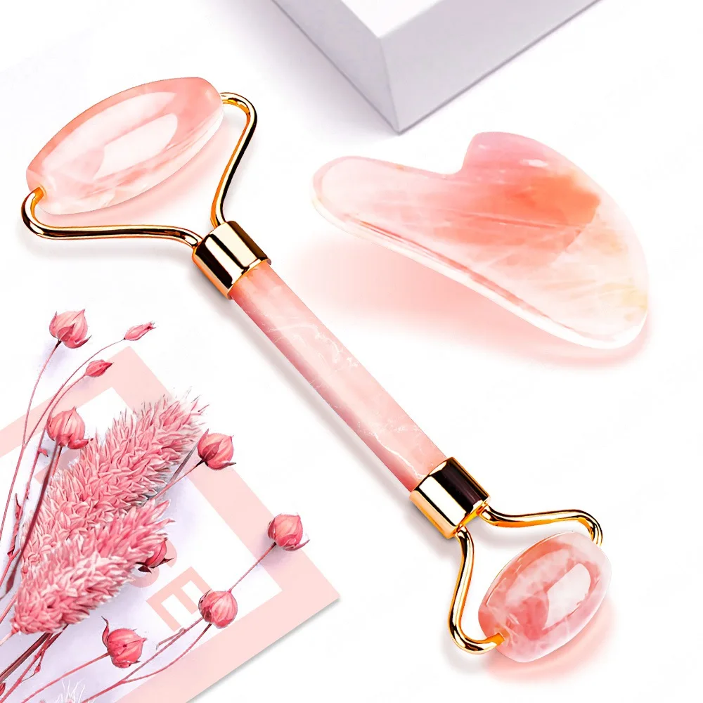 Массажер натуральный из розового кварца для лица, скребок для гуаши, Нефритовый ролик, устройство для массажа лица